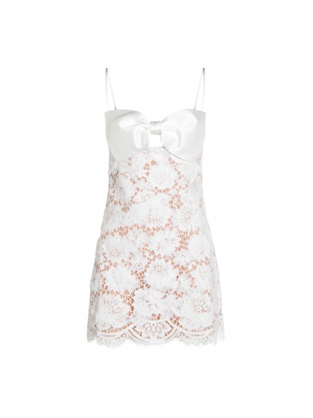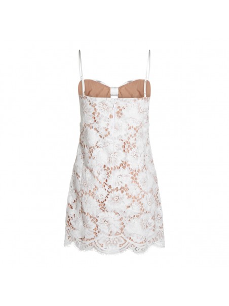 White cotton mini dress from Self-Portrait featuring sleeveless, mini length, back zip fastening and laces.