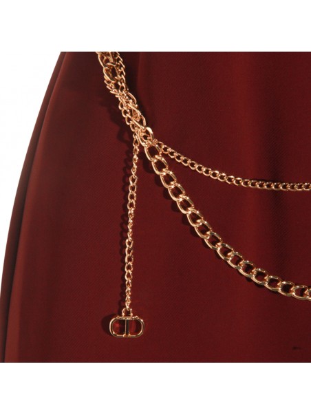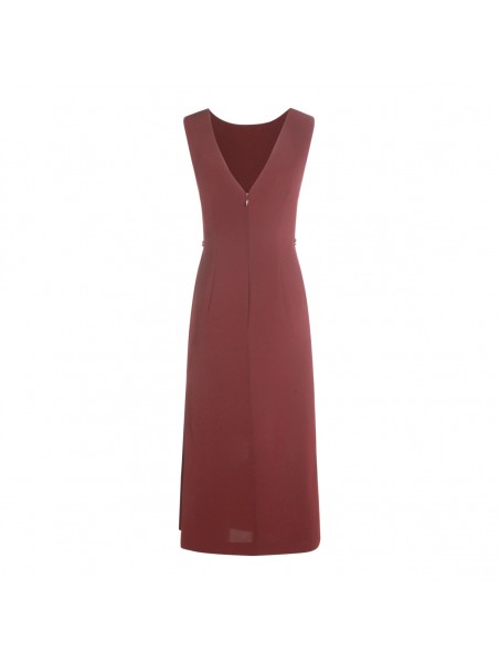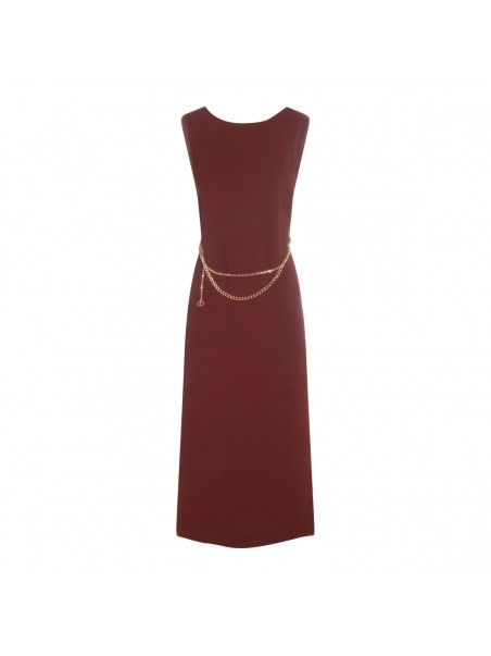 Red silk dress from Twinset featuring sleeves, round collar, belt waist and midi length.