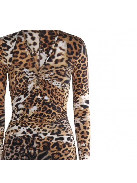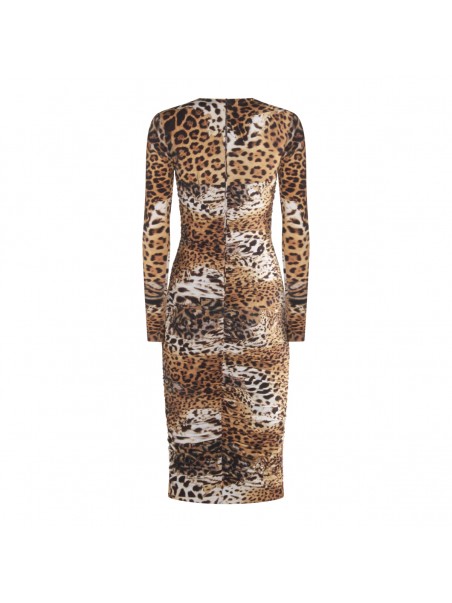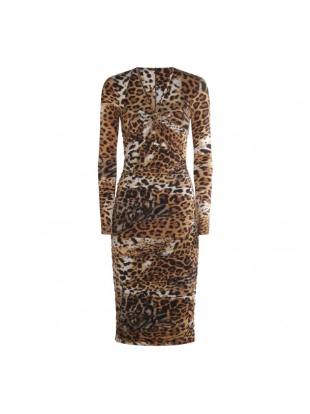 Multicolor midi dress from Roberto Cavalli featuring round collar, long sleeves and midi length.