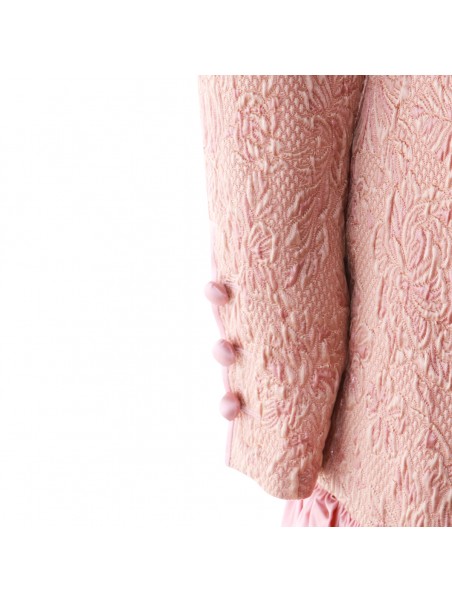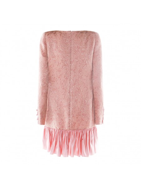 Pink wool mini dress from Valentino featuring round collar, long sleeves, hem with rouches detail, back zip fastening and mini length.