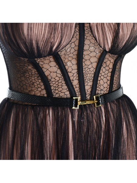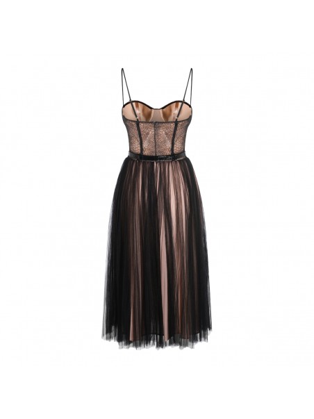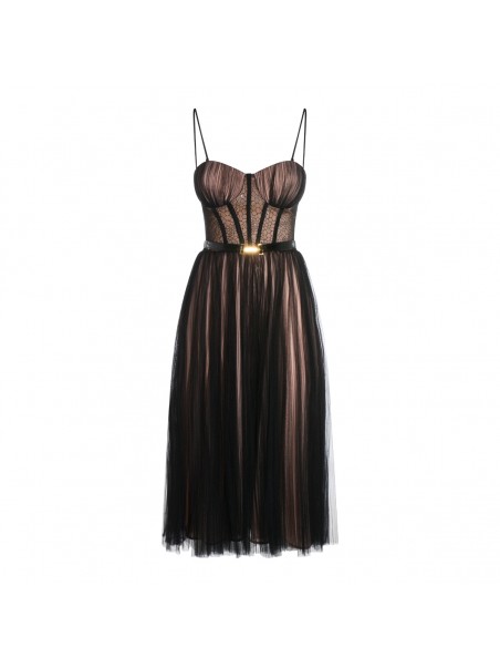 Black midi dress from Elisabetta Franchi featuring sleeveless, heart neckline, midi length and zip fastening.