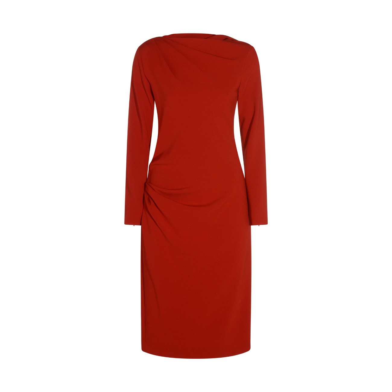 Red midi dress from Max Mara featuring long sleeves, round collar, midi length and regular vestibility.