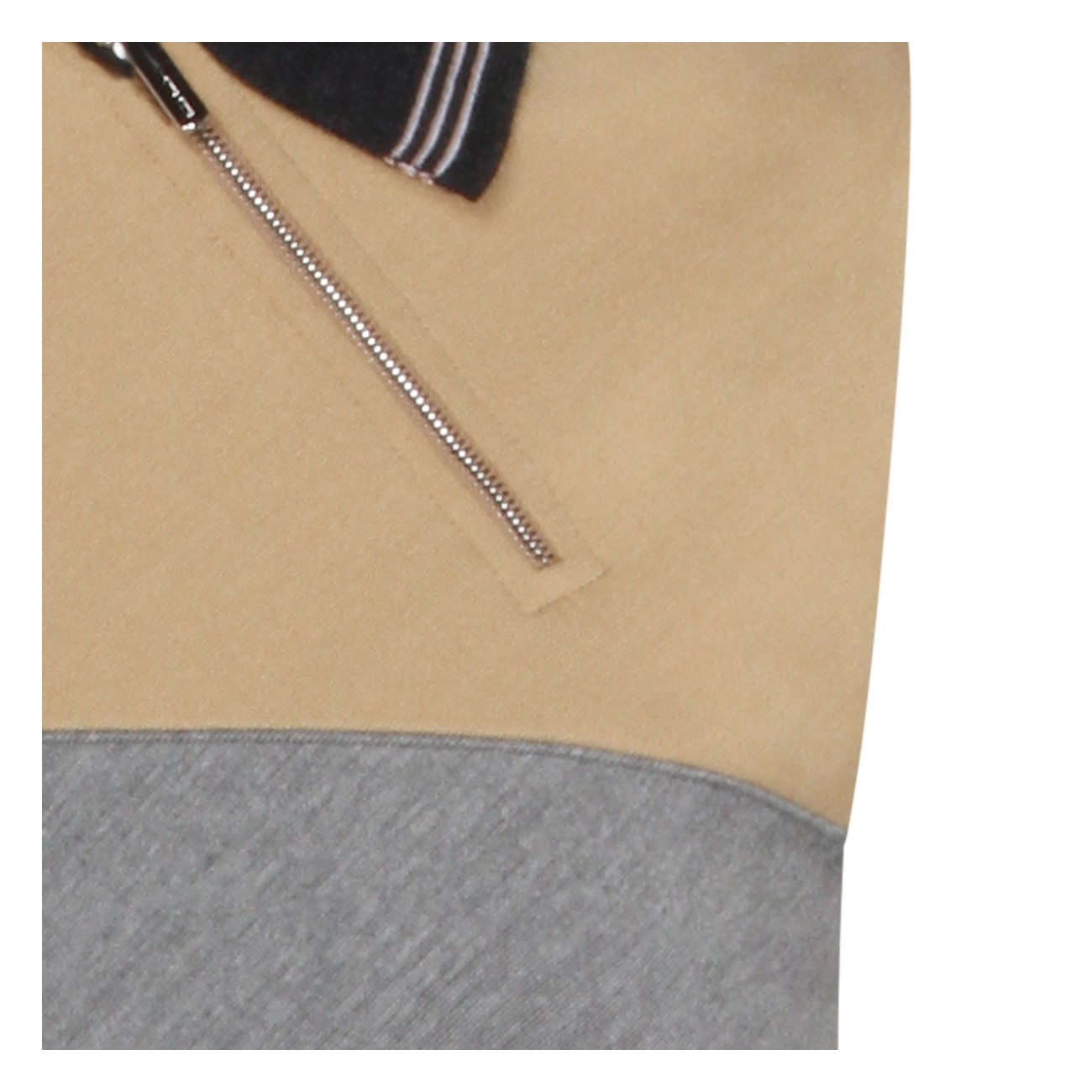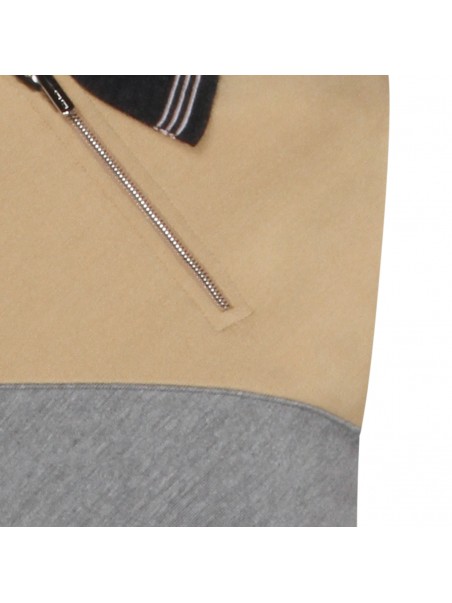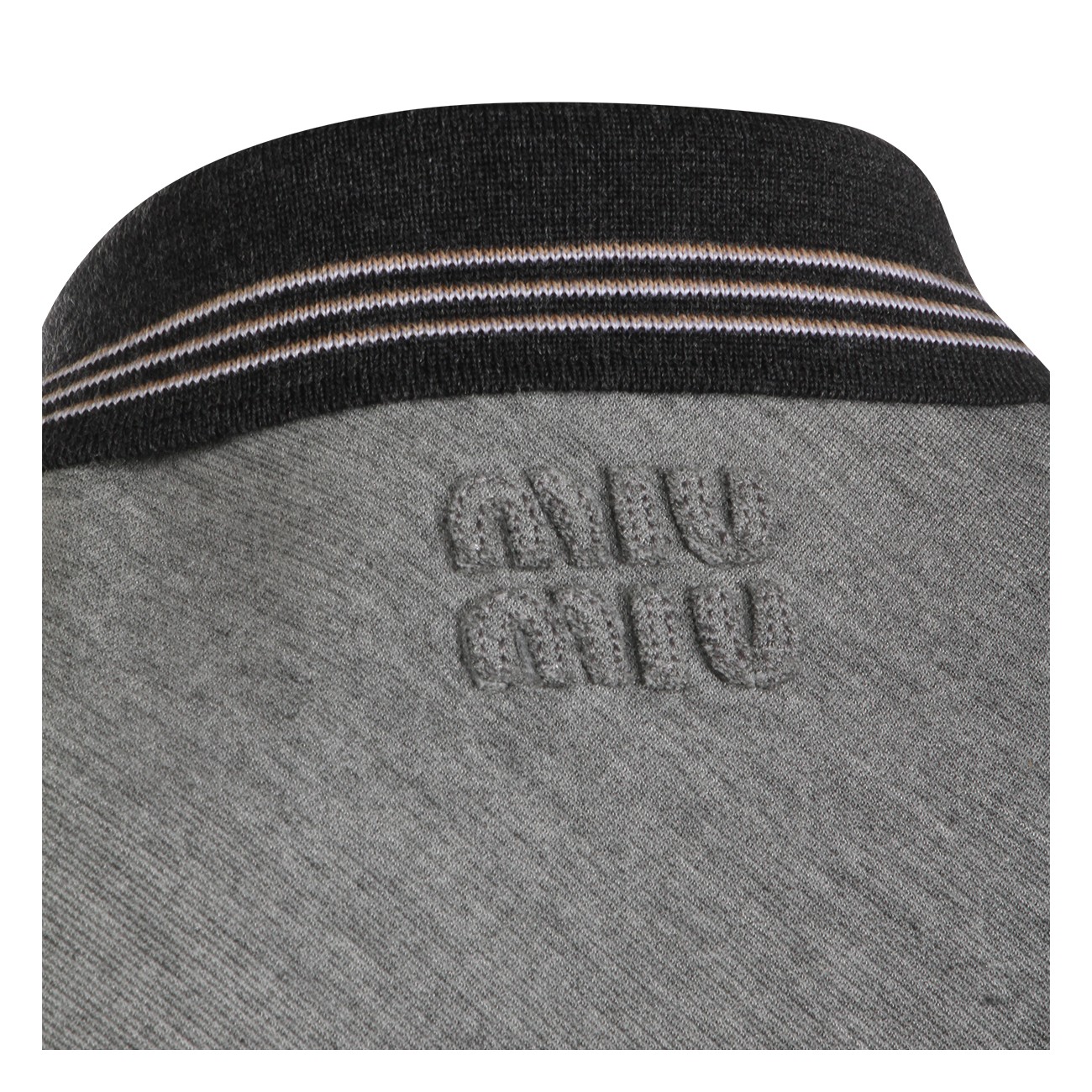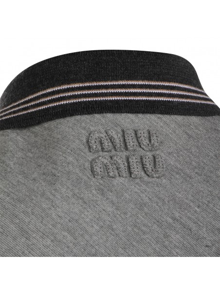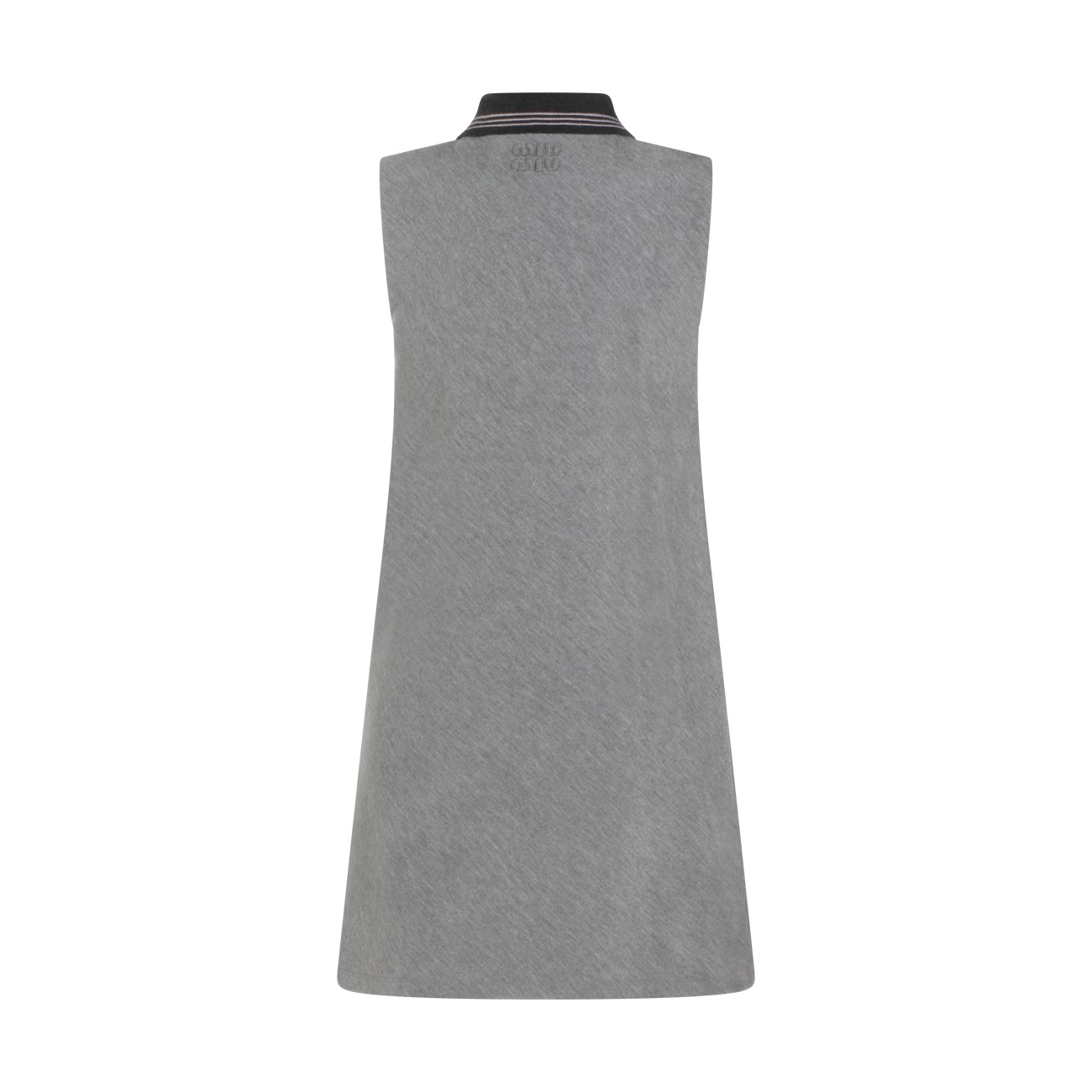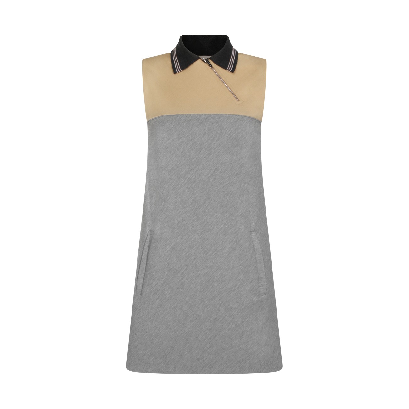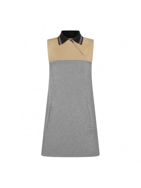 Grey and camel dress from Miu Miu featuring shirt neck, zip fastening, sleeveless, pockets and regular vestibility.