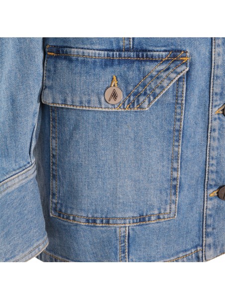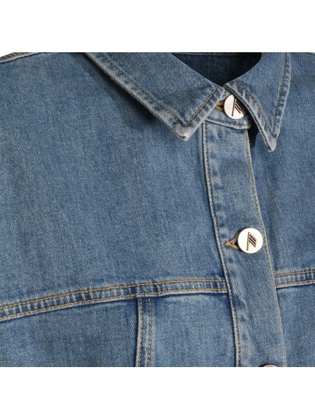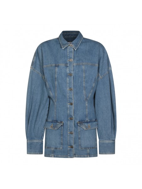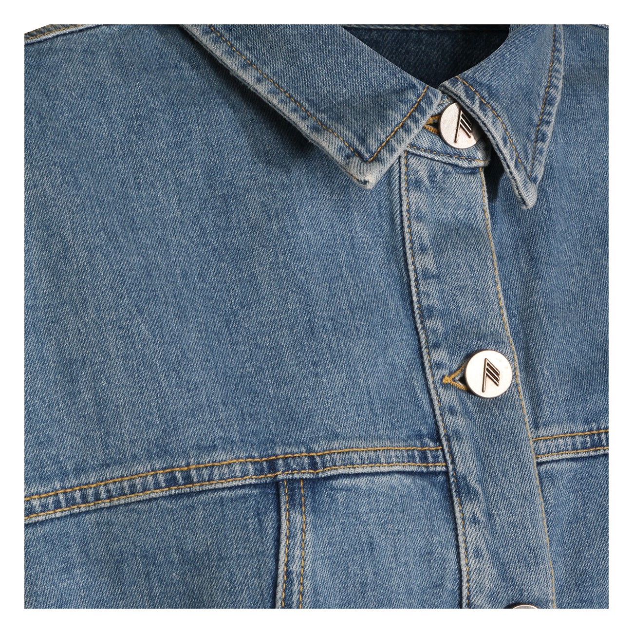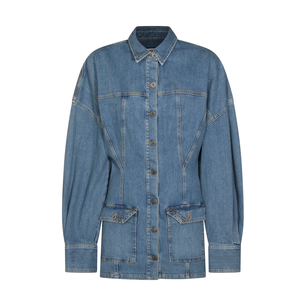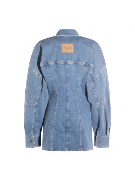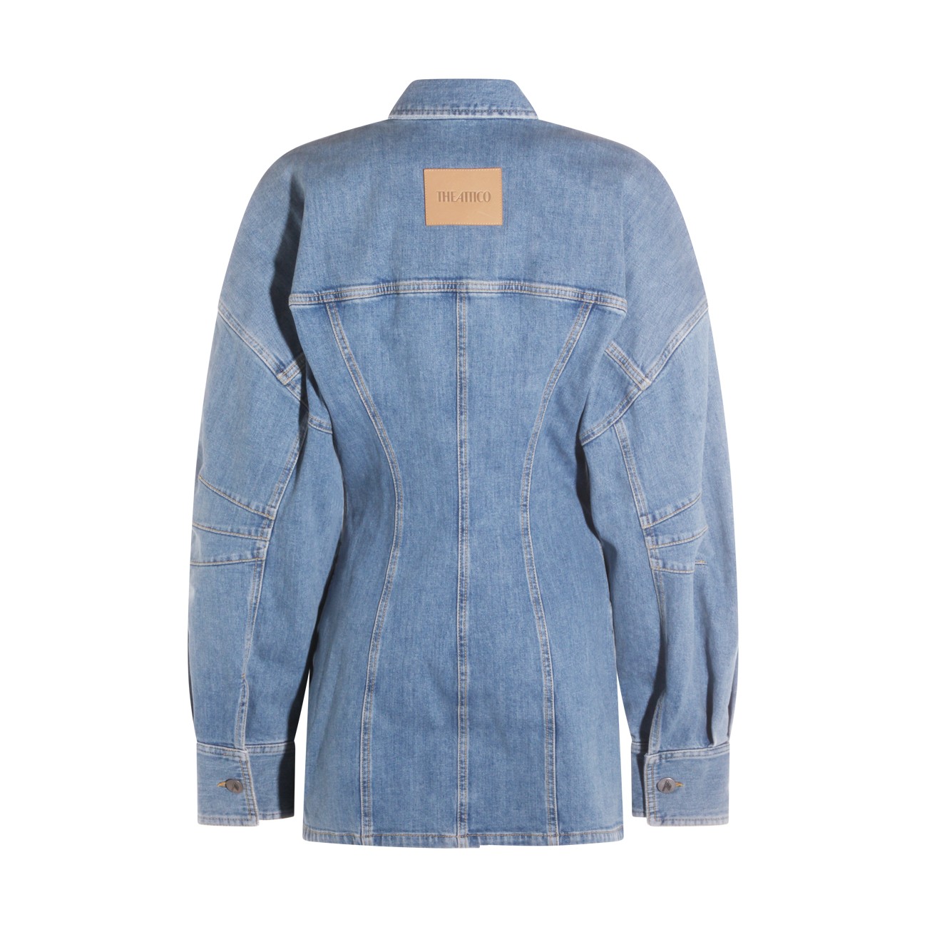 Blue jeans cotton dress from The Attico featuring shirt neck, buttons fastening, long sleeves, frontal pockets and slim vestibility.