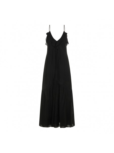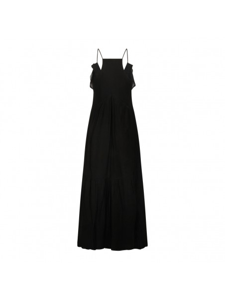 Black cotton dress from Marant Etoile featuring straps, V-neck, all over length and loose vestibility.