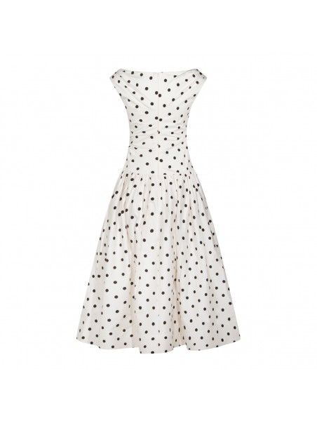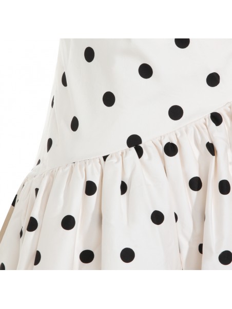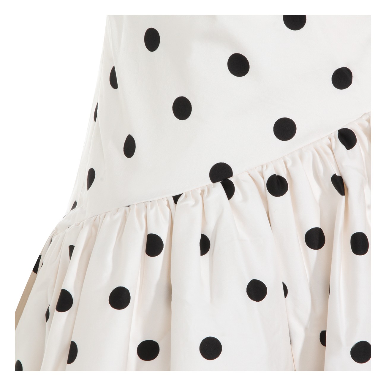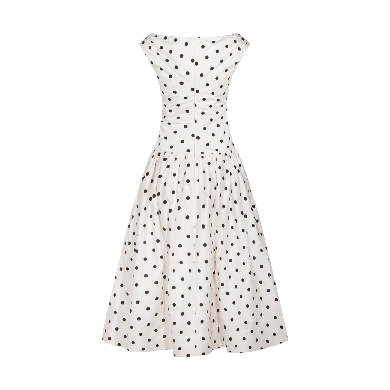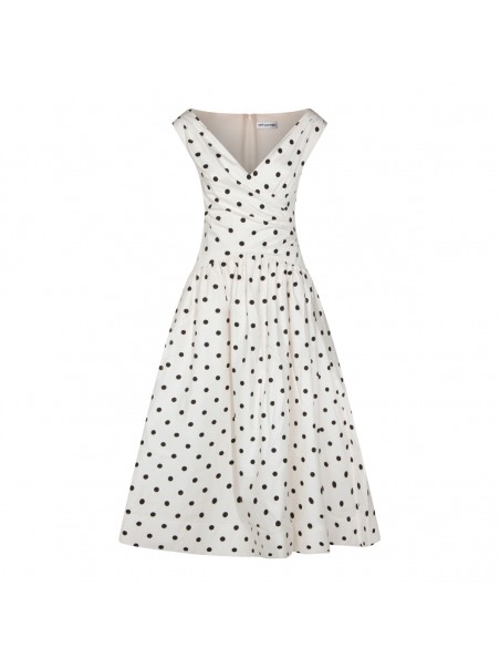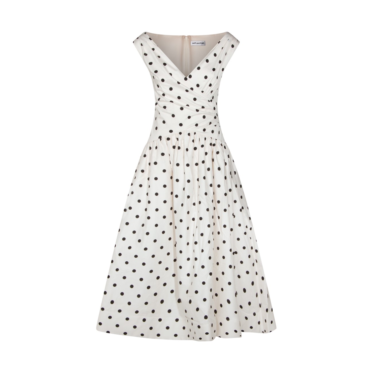 Cream cotton dress from Self-Portrait featuring V-neck, sleeveless, loose vestibility and all over stamp.