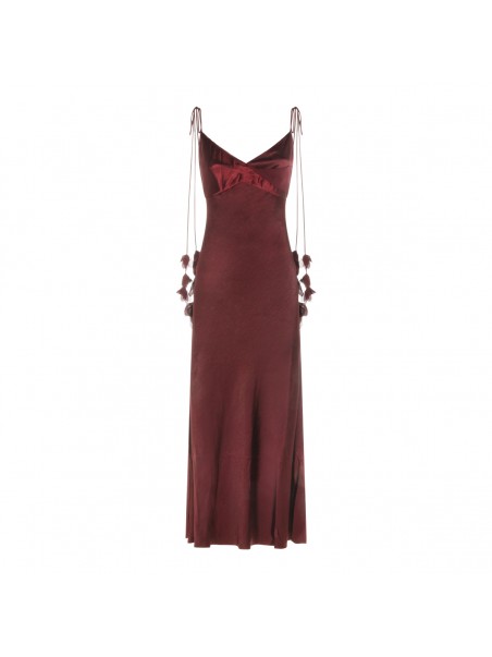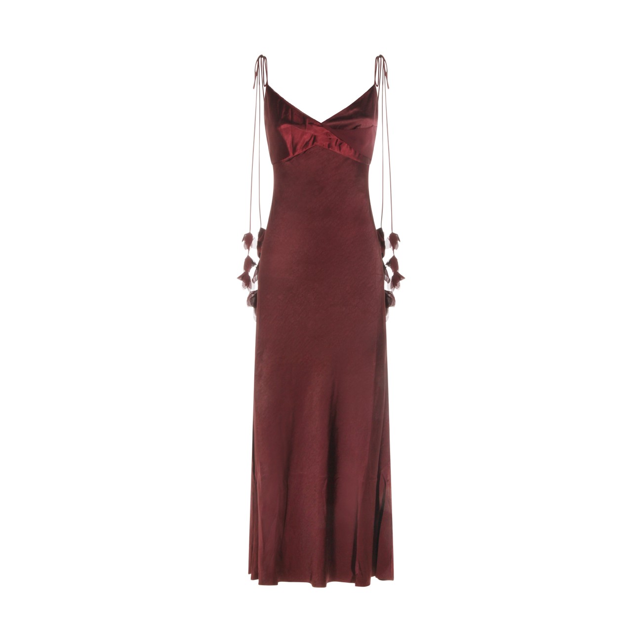 Burgundy dress from Self-Portrait featuring sleeveless, V-neck, all over length and back details.