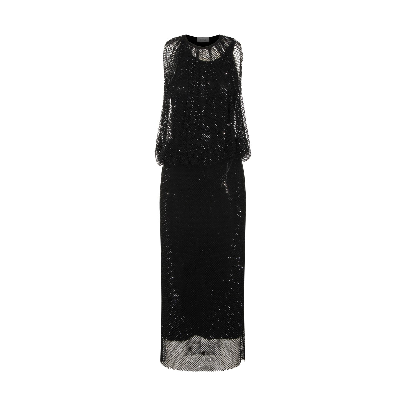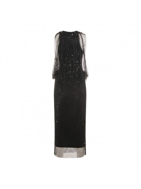 Black dress from Sportmax featuring crew neck, sleeveless, all over length, transparencies and sparkling details.