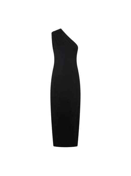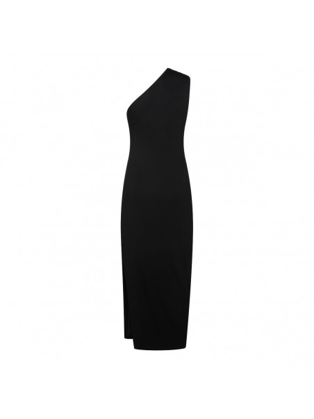 Black stretch long dress form Thom Krom featuring stretch fit, lon length, one shoulder line and straight hem.