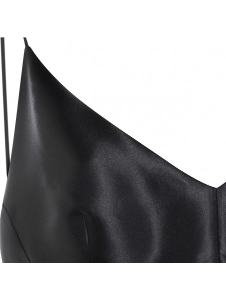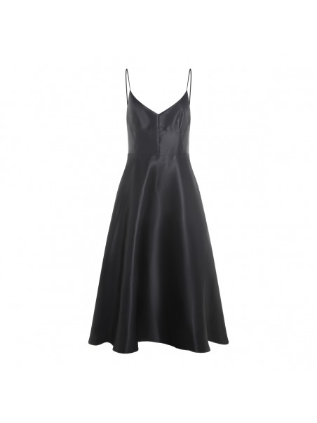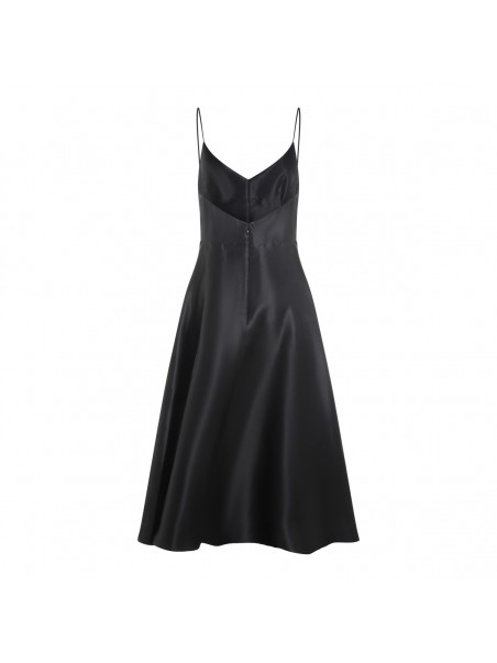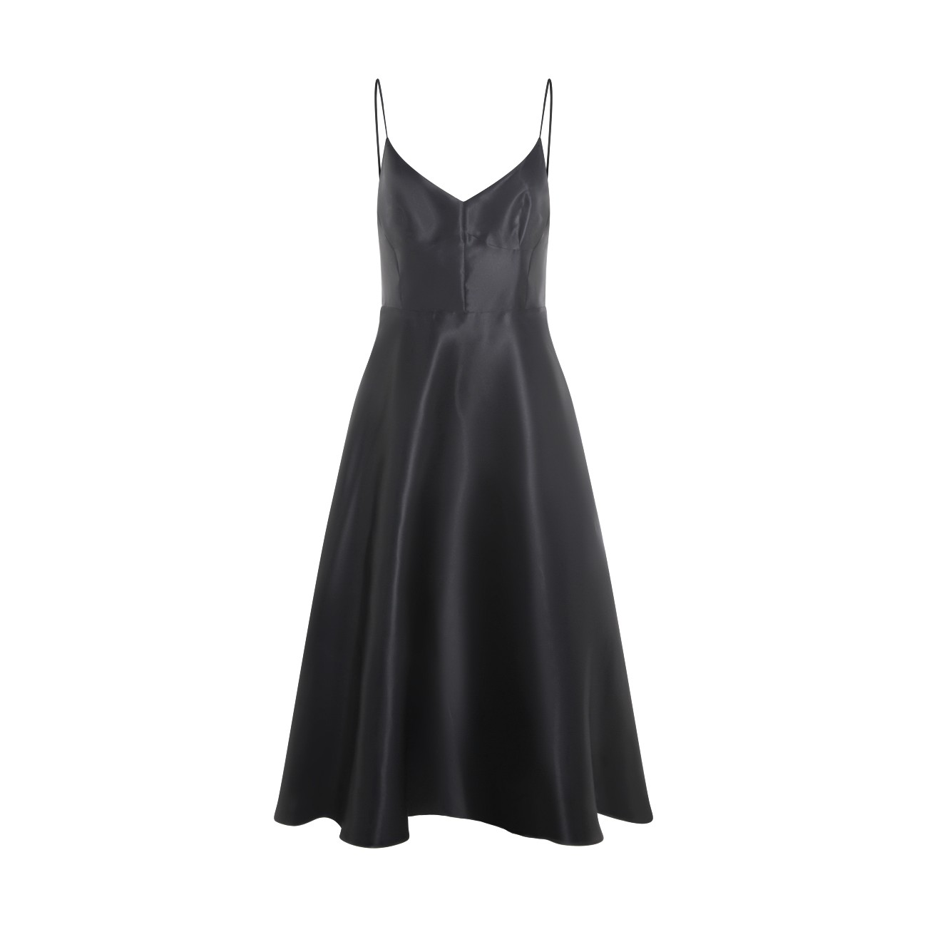 Black silk midi dress from Alberta Ferretti featuring sleeveless, v neckline, open back, zip fastening, midi length and flared shape.