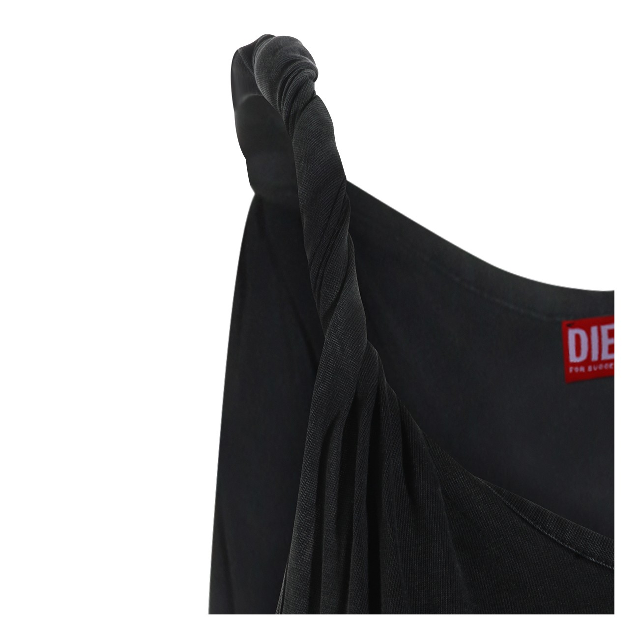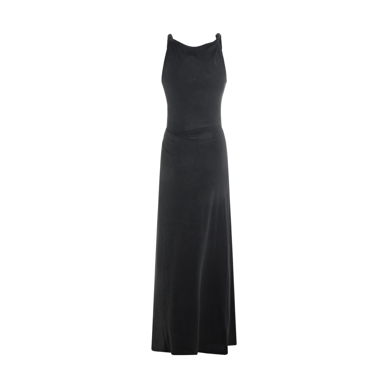 Black modal dress from Diesel featuring sleeveless, round collar, long length, details and regular fit.