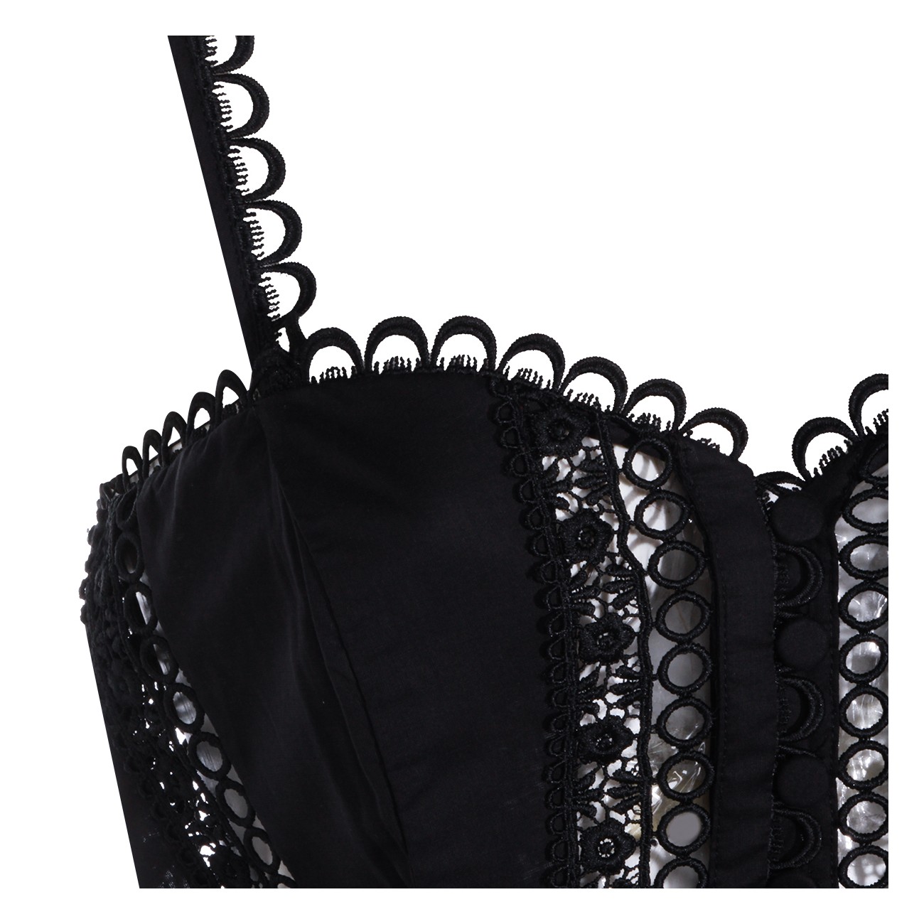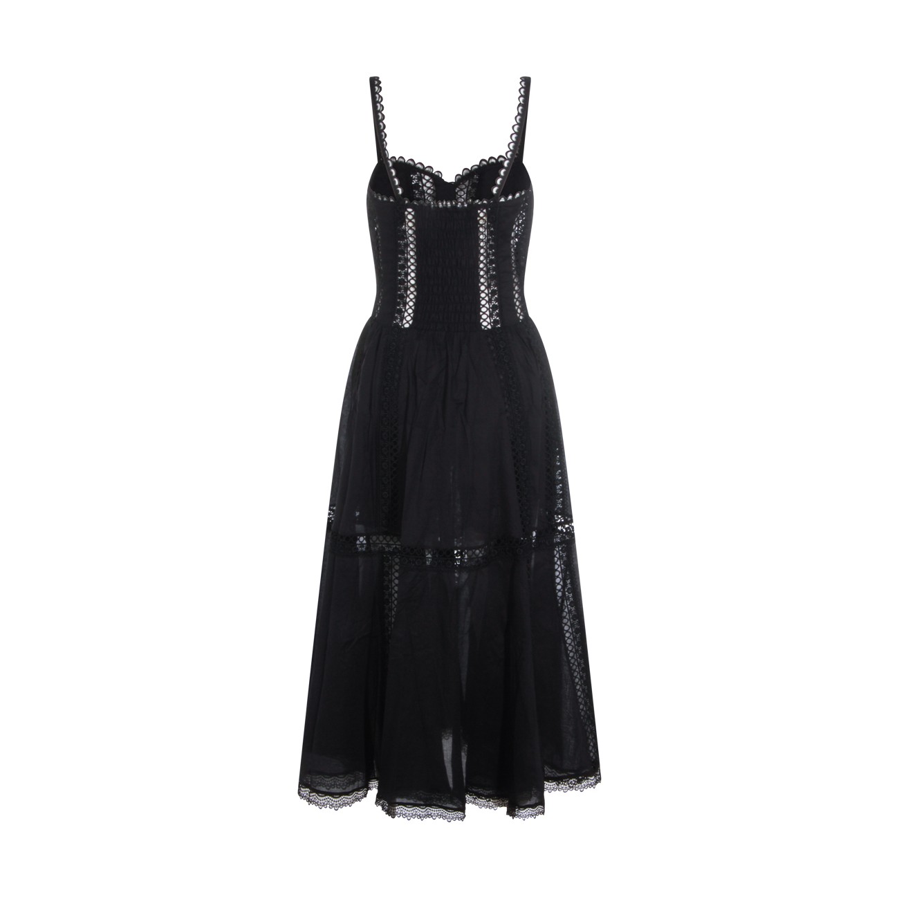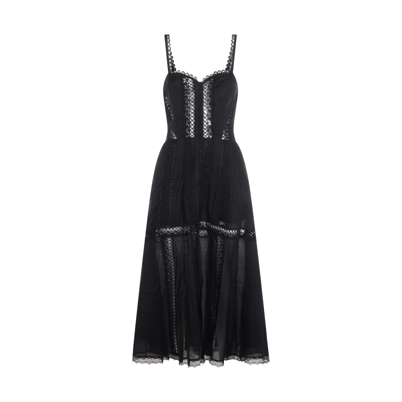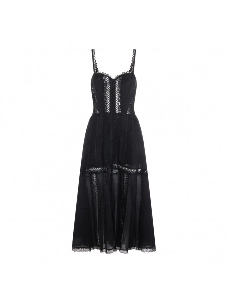 Black cotton midi dress from Charo Ruiz Ibiza featuring heart neckline, sleeveless, laces detail and midi length.