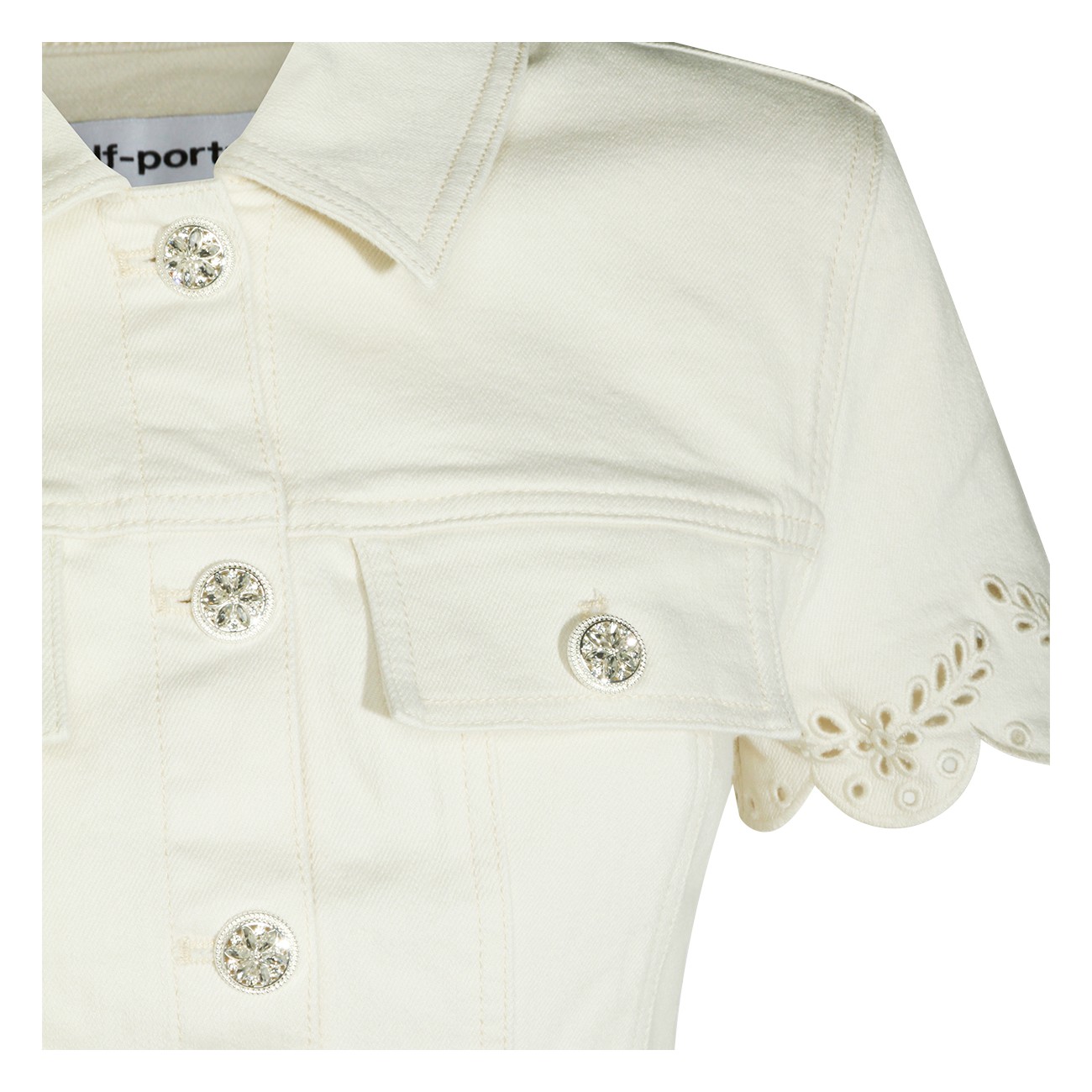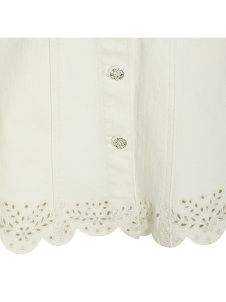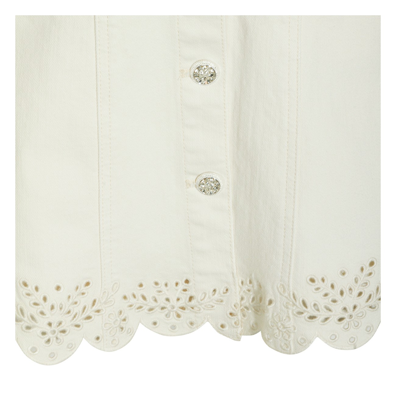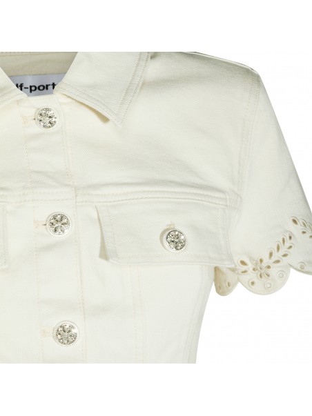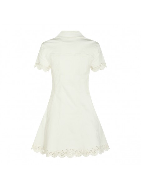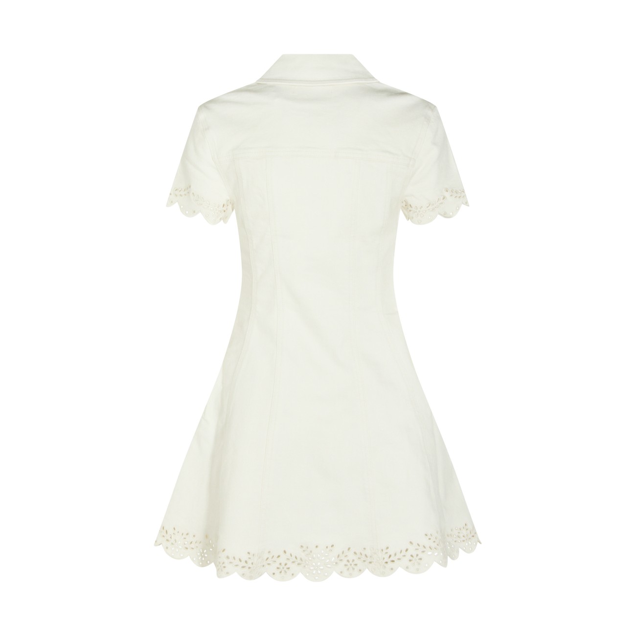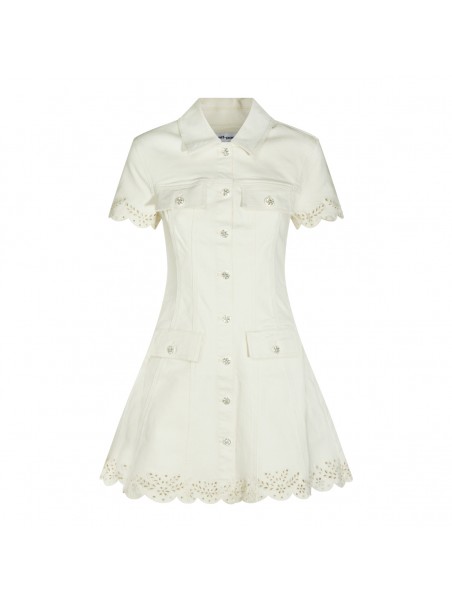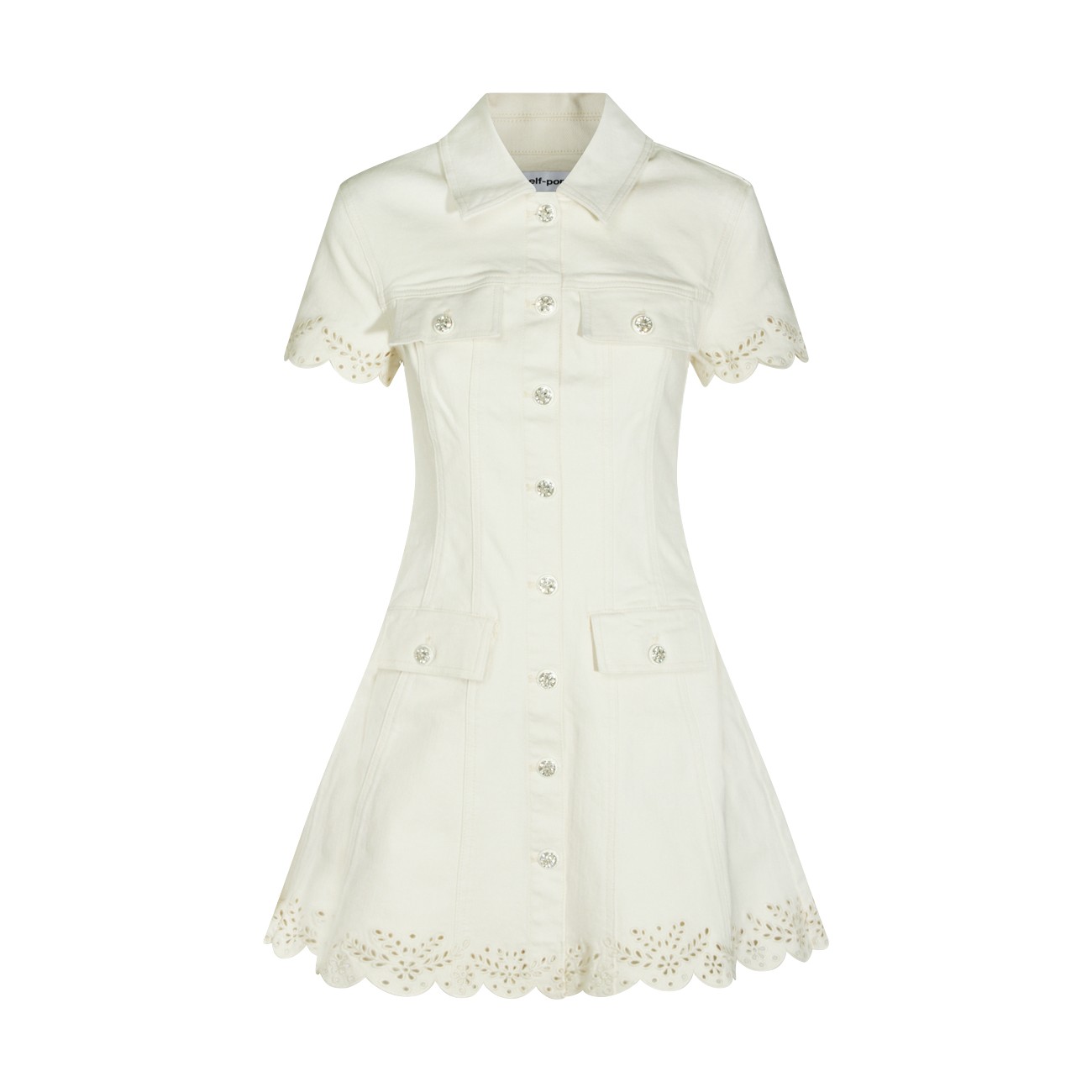 Cream cotton mini dress from Self-Portrai featuring short sleeves, buttons fastening, multipockets, laces and mini length.