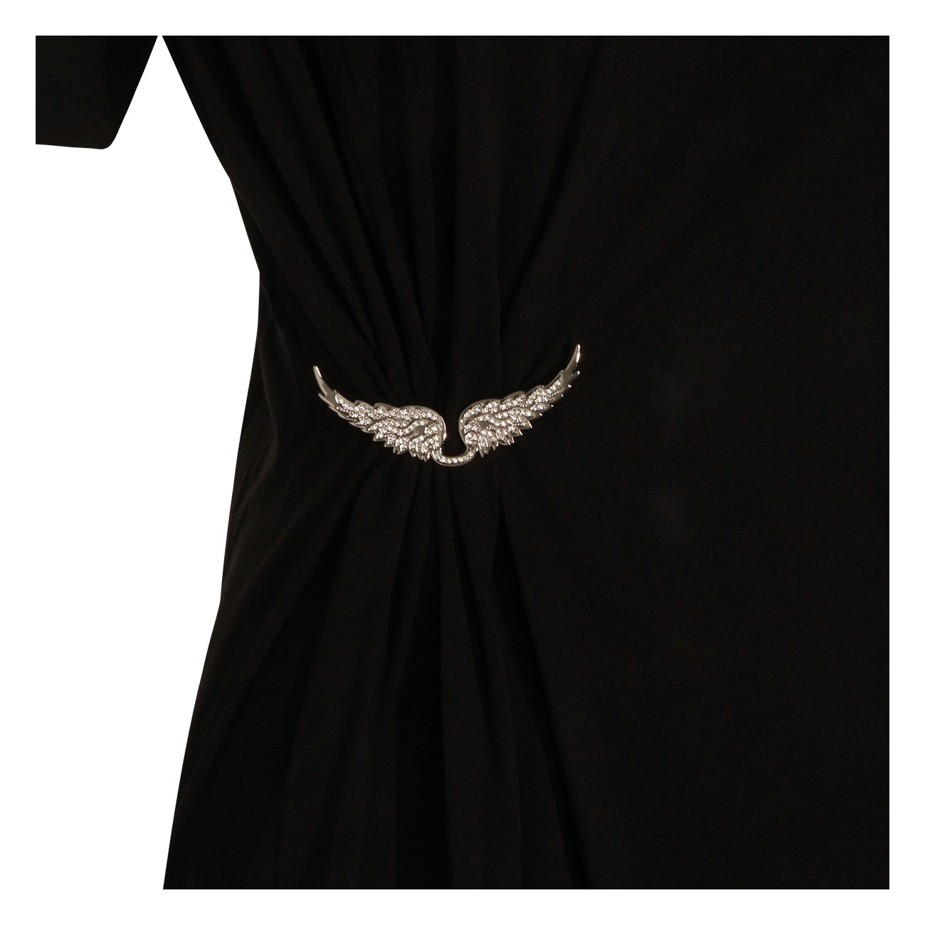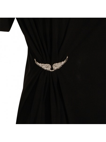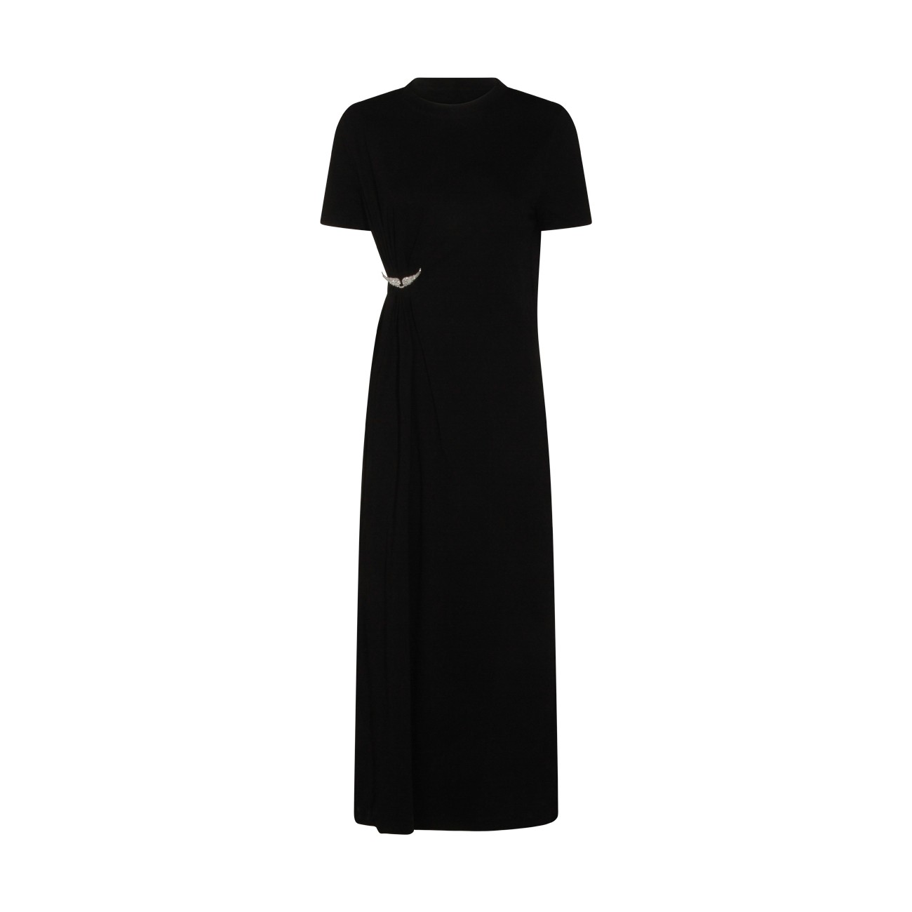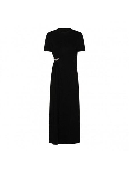 Black cotton dress from Zadig & Voltaire featuring crew neckline, short sleeves, slit and long lenght.