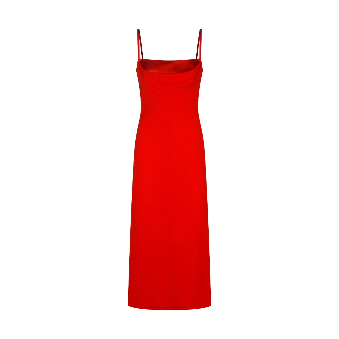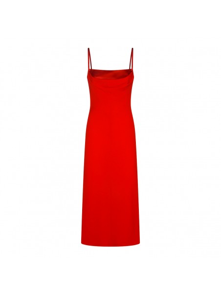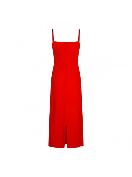 Red midi dress from Max Mara featuring sleeveless, sqaure neckline, back zip fastening and midi length.