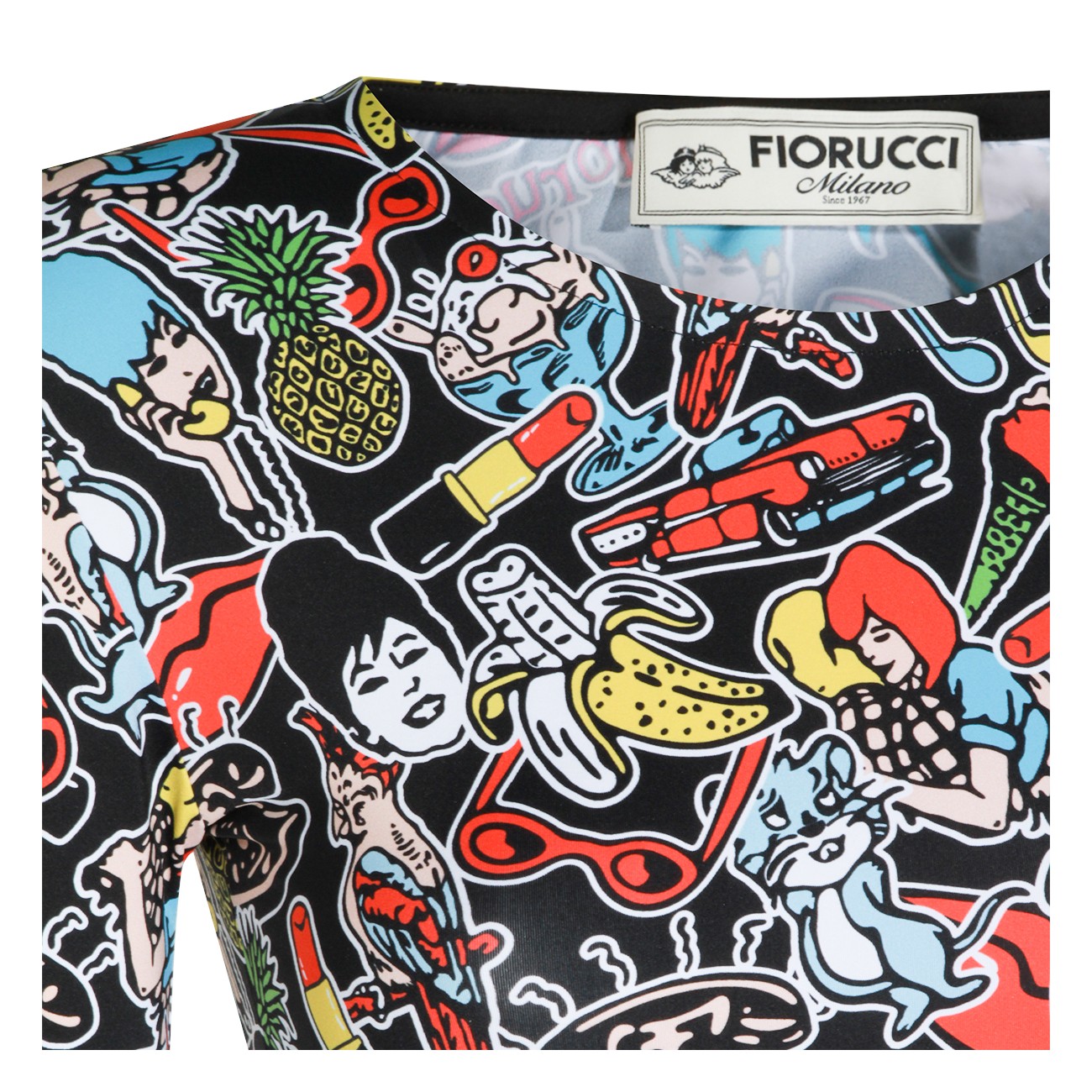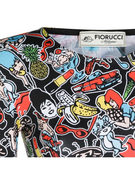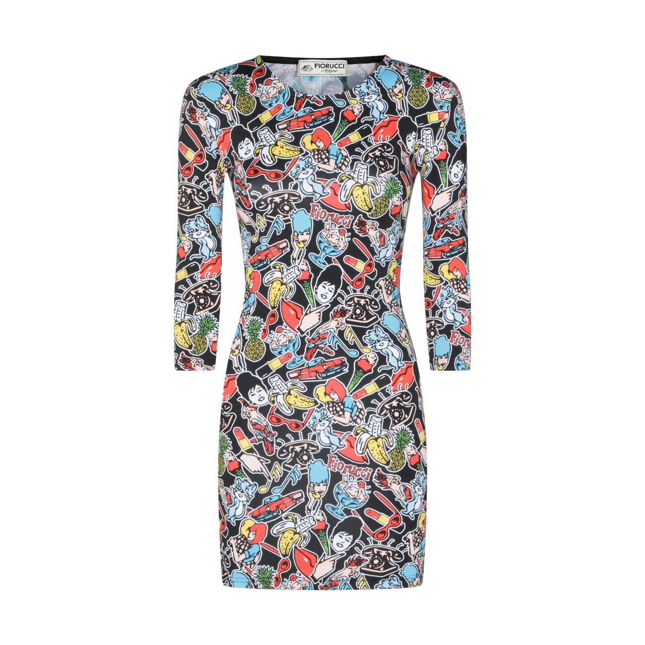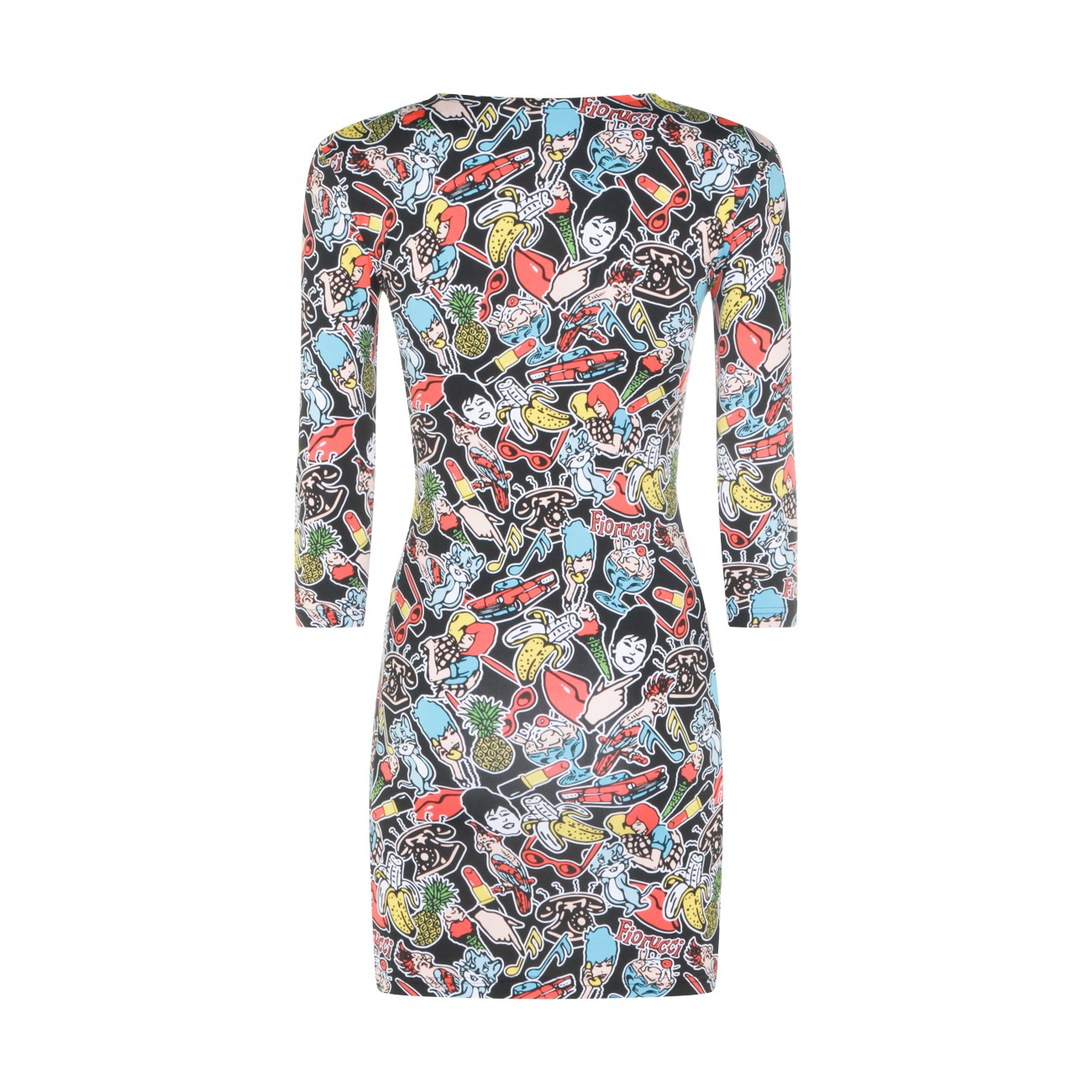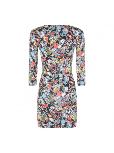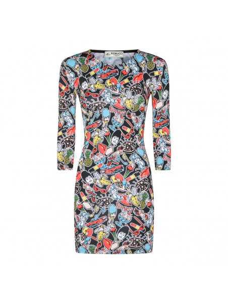 Multicolor dress from Fiorucci featuring round collar, long sleeves, all-over print and tight fit.