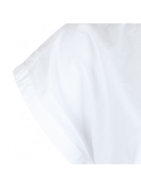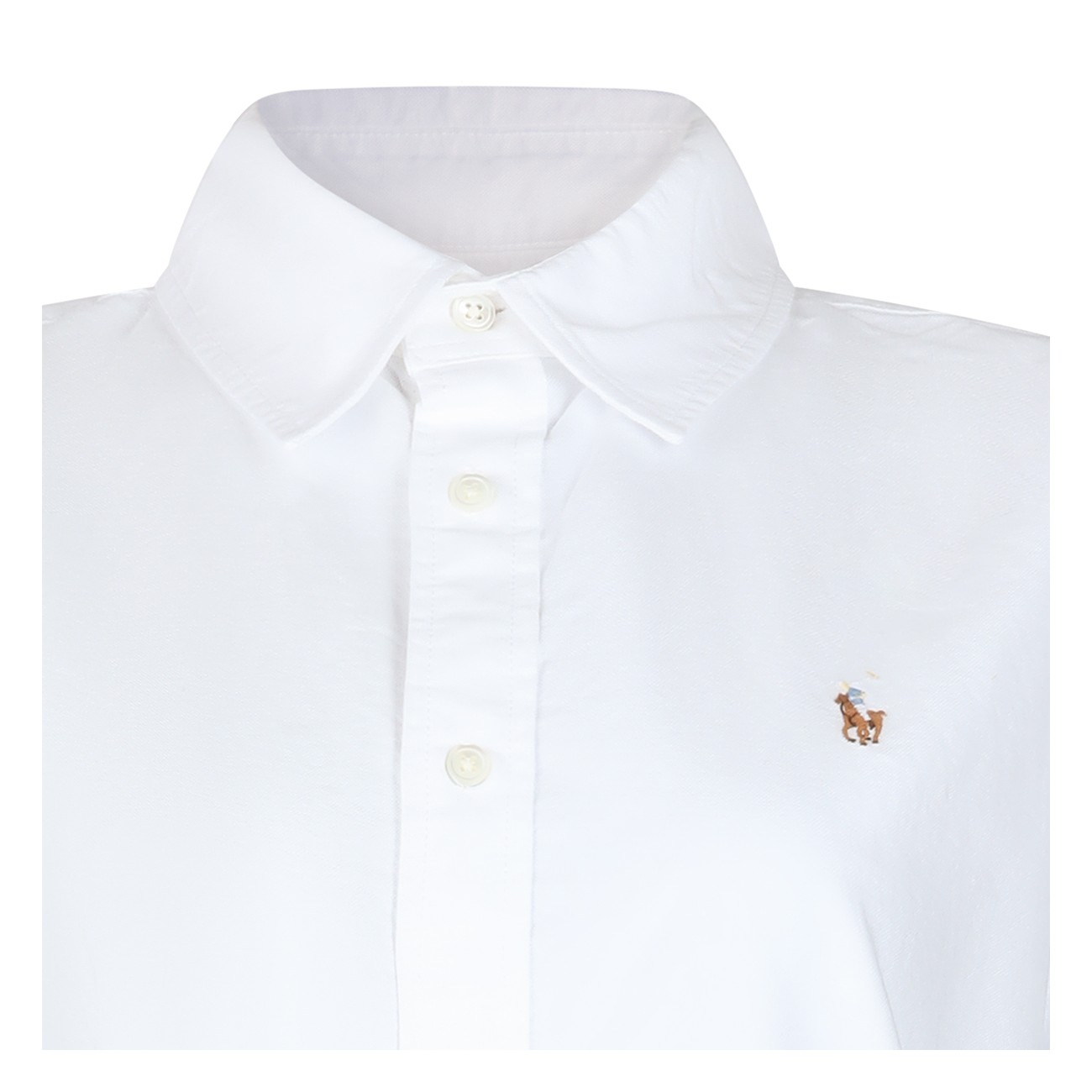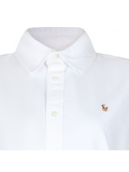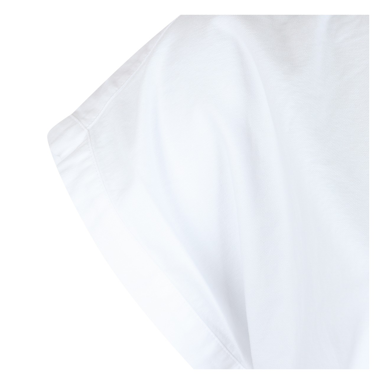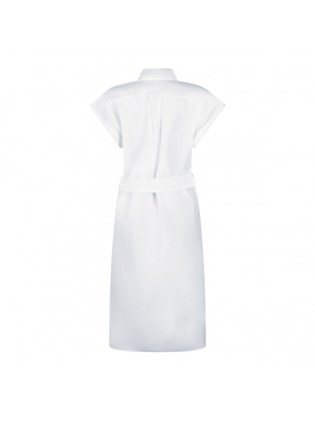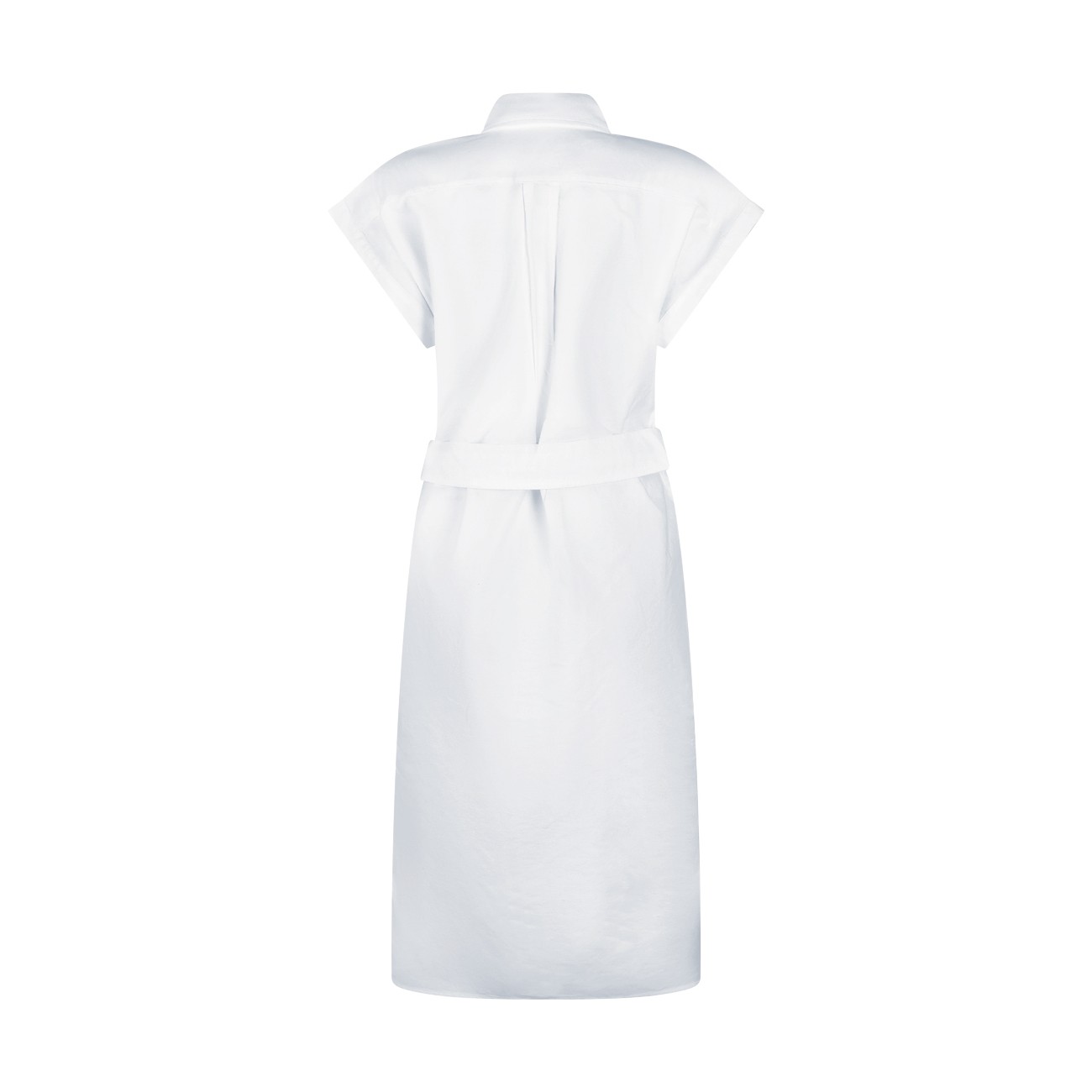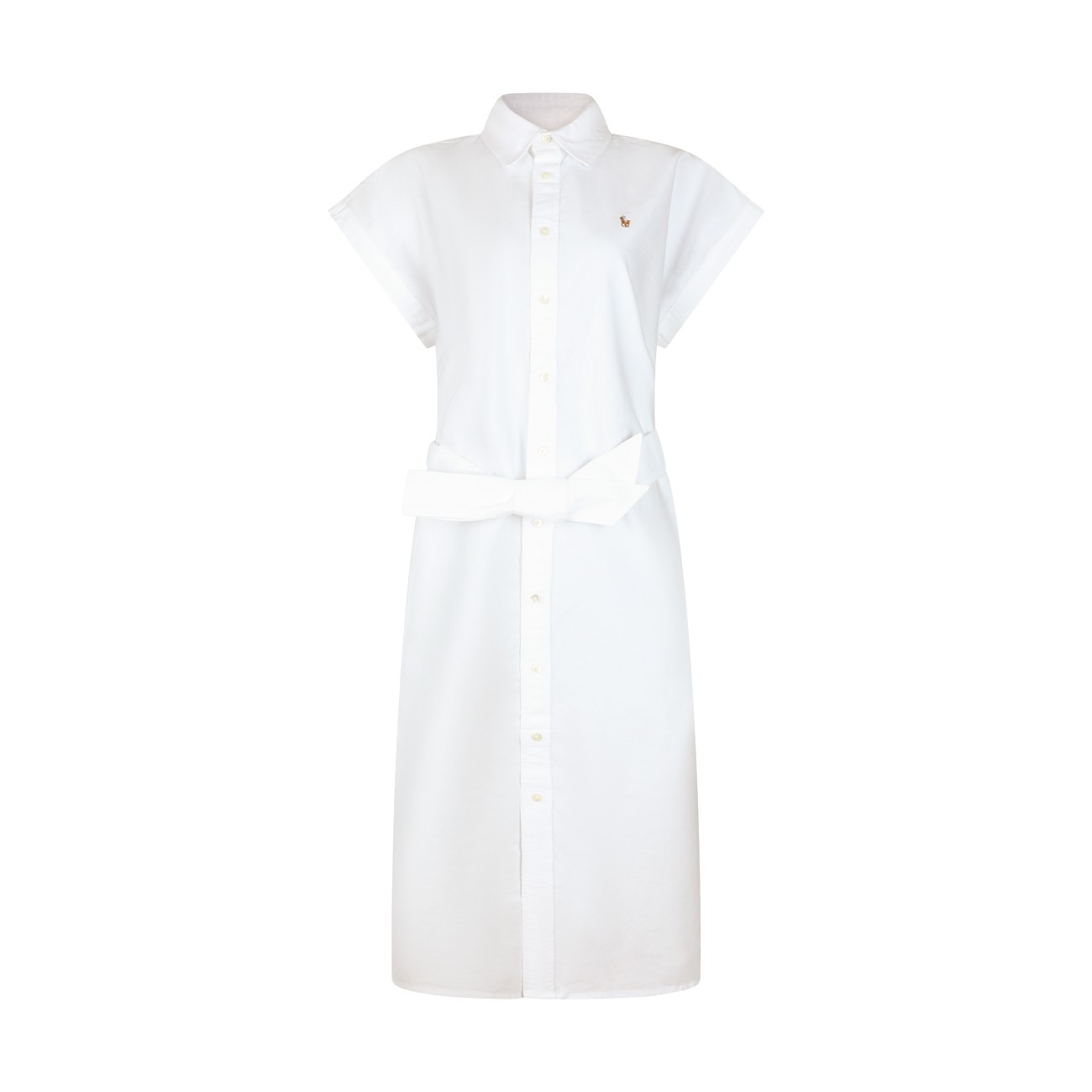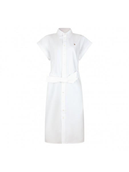 White cotton dress from Polo Ralph Lauren featuring wide shorts sleeves, buttons fastening, logo, matchy belt waist and long lenght.