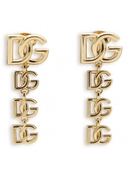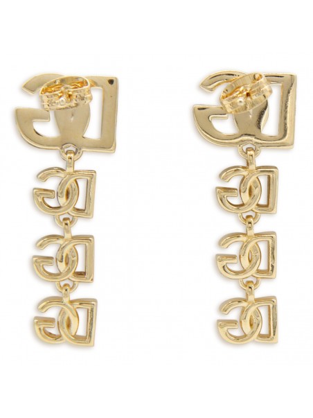 Gold metal Multilogo earrings from Dolce&Gabbana featuring adjustable closure and pendant charm with multilogo lettering.