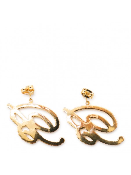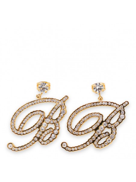 Gold earrings from Blumarine featuring classic fastening, rhinestone monogram and crystals.