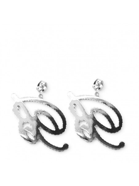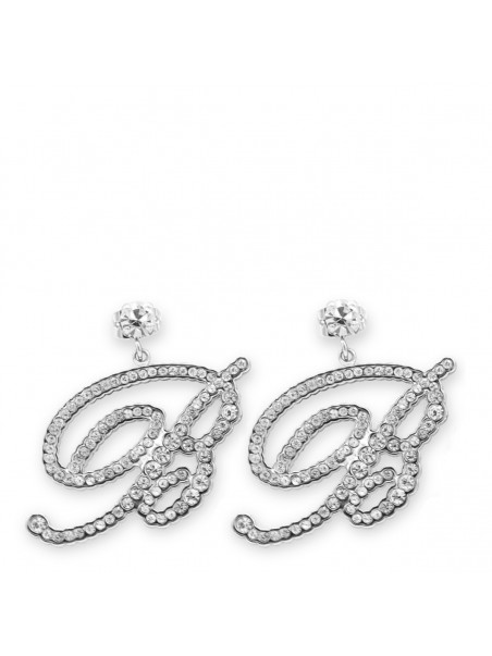 Silver earrings from Blumarine featuring classic fastening, rhinestone monogram and crystals.