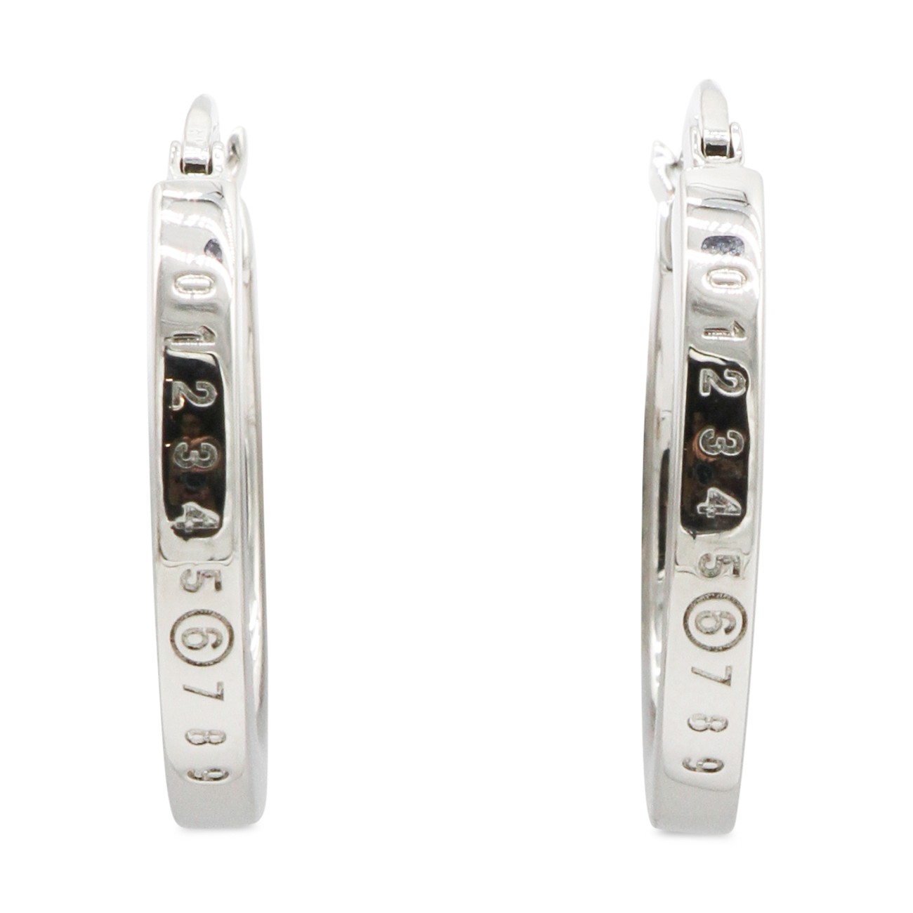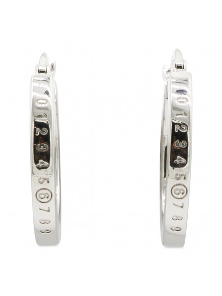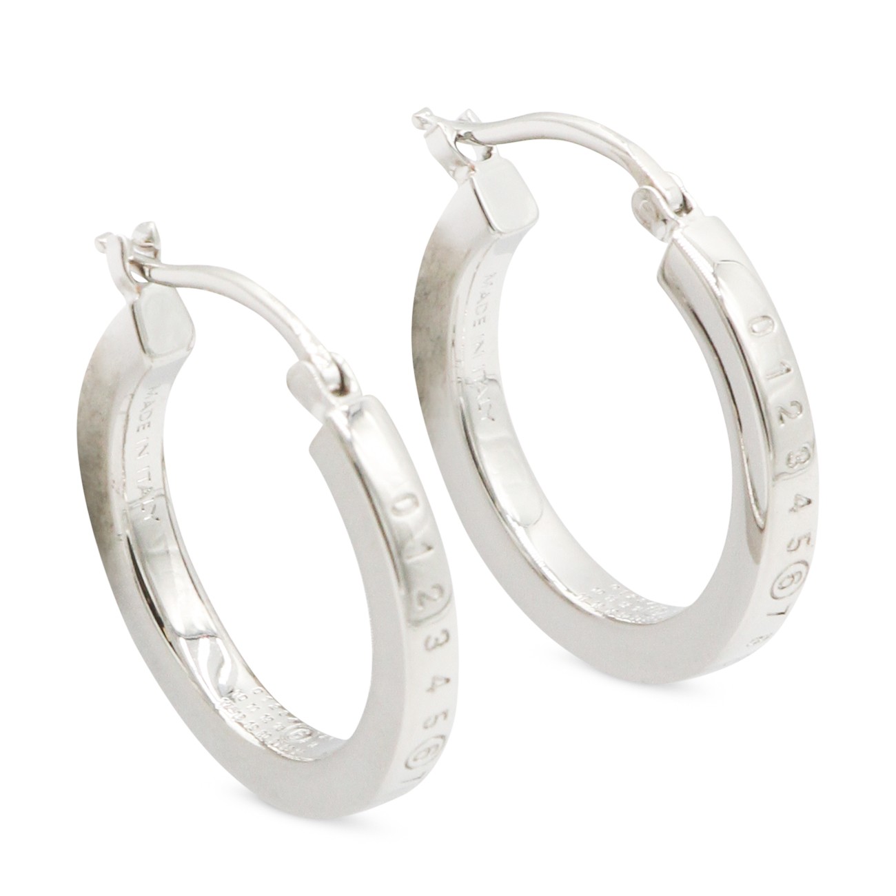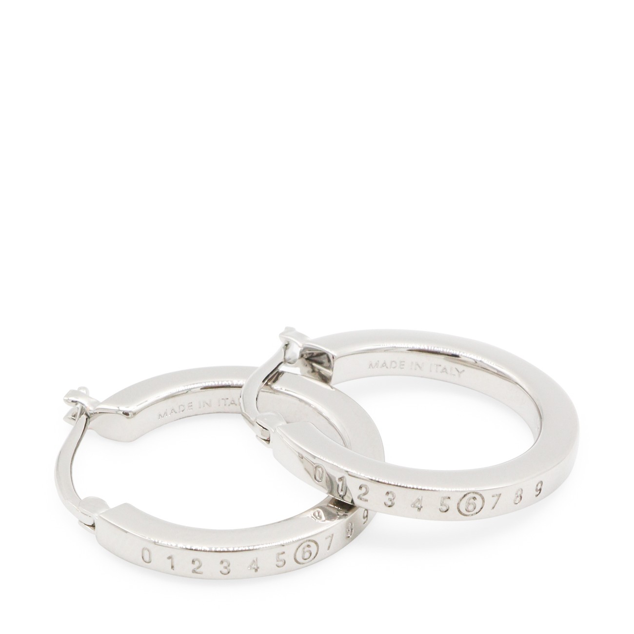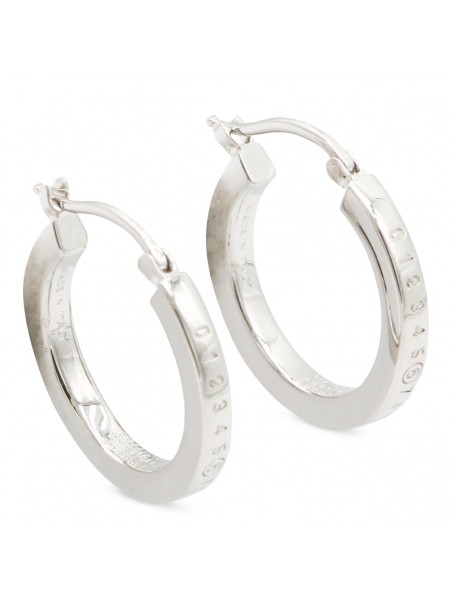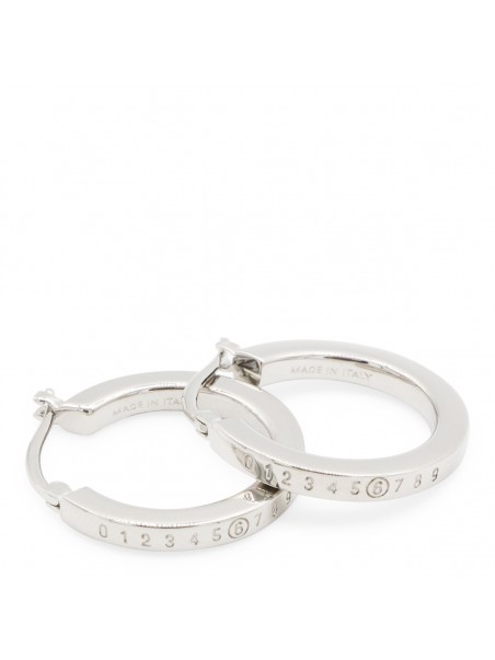 Silver brass earrings from MM& Maison Margiela featuring silver tone, brass, frontal logo detail and back fastening.