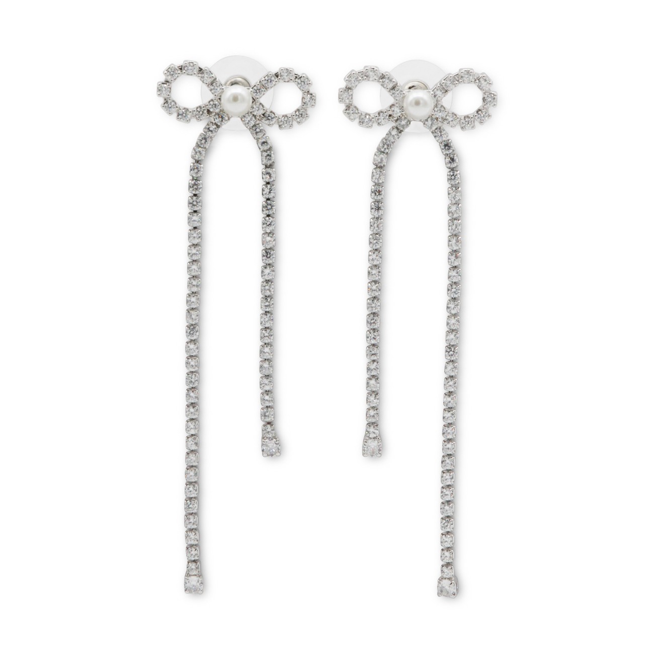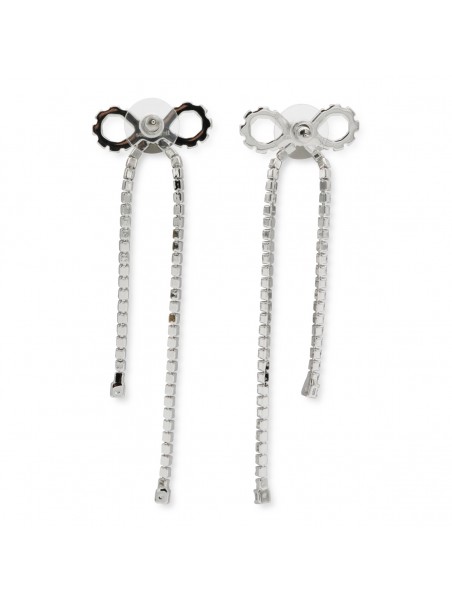 Silver earrings from Self-Portrait featuring back fastening, bow detail and embellishment.
