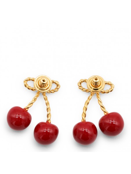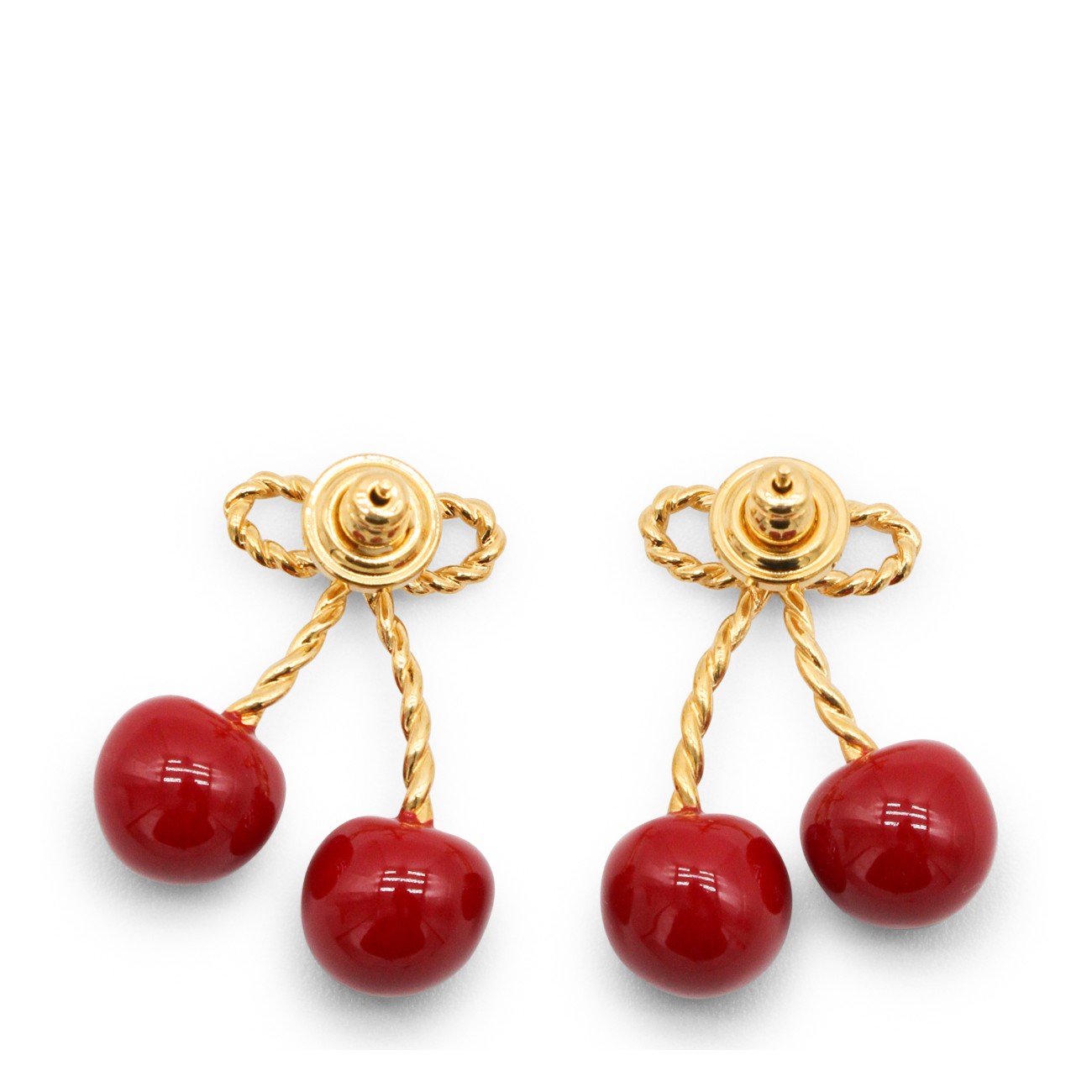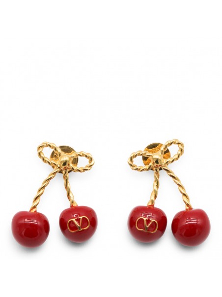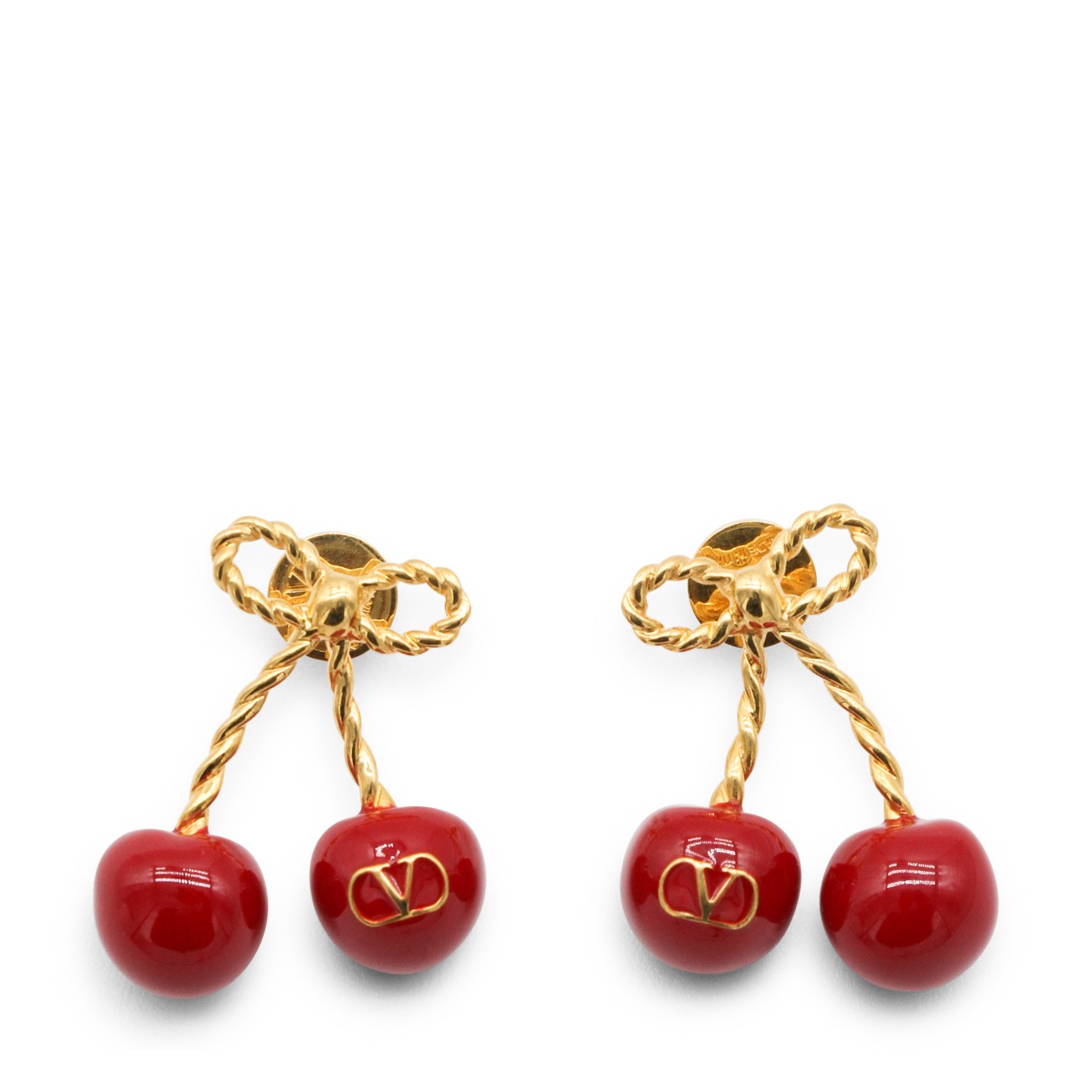 Gold and red brass earrings from Valentino Garavani featuring cherry shape, gold tone hardware and logo.