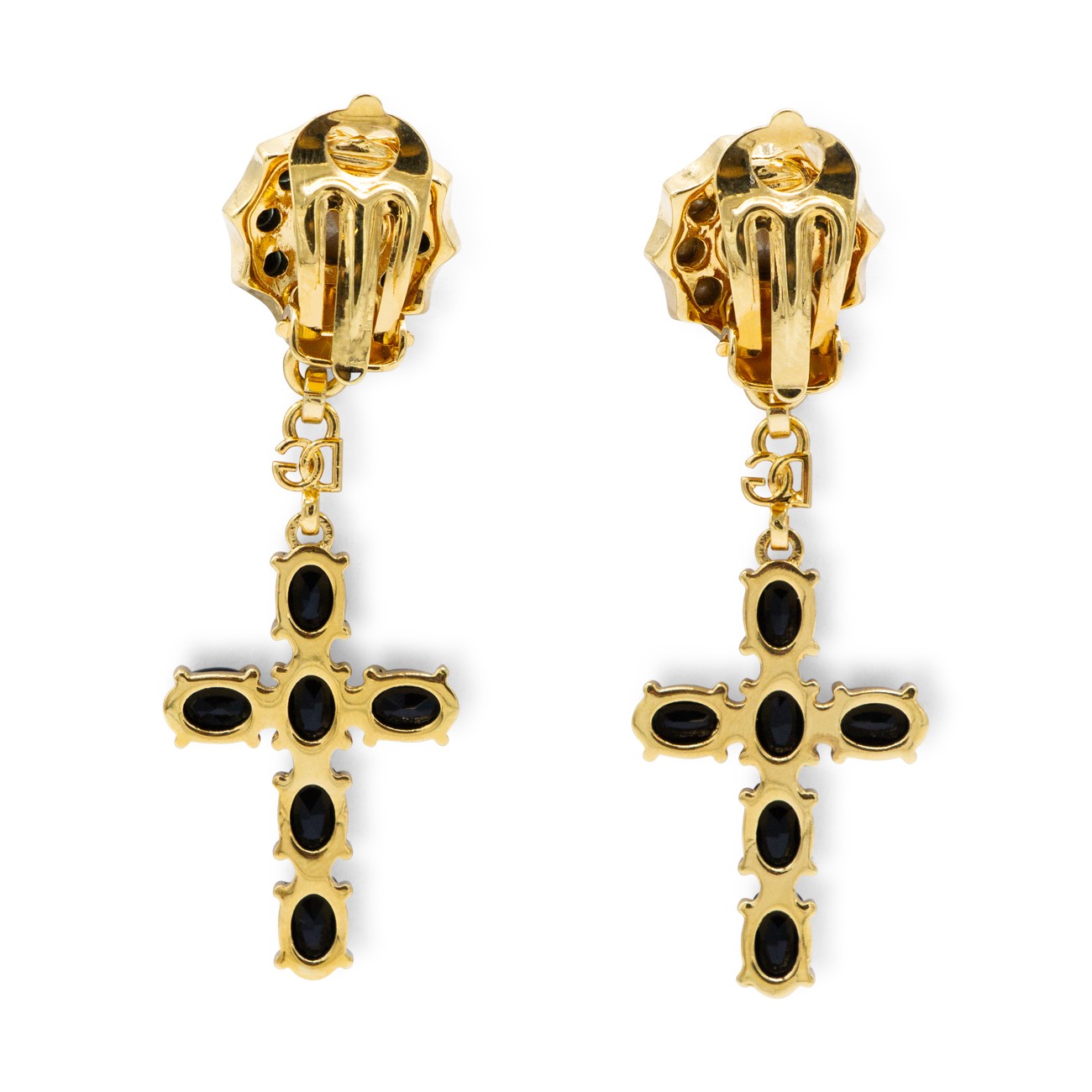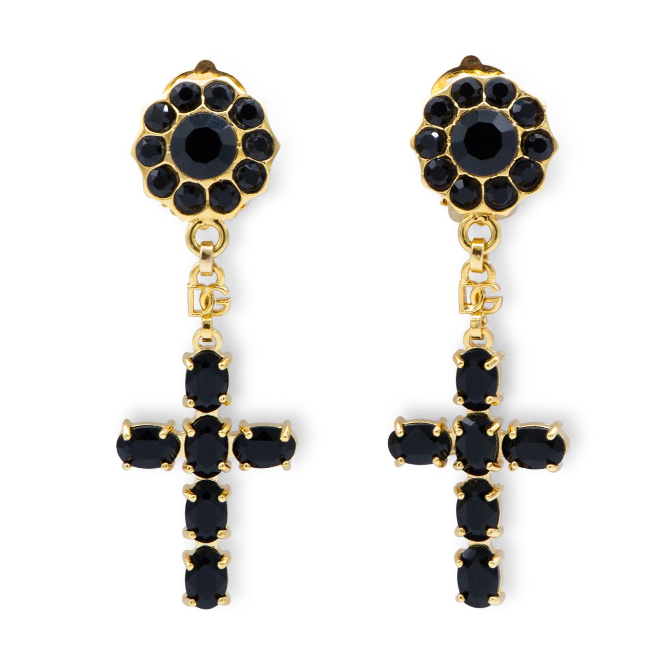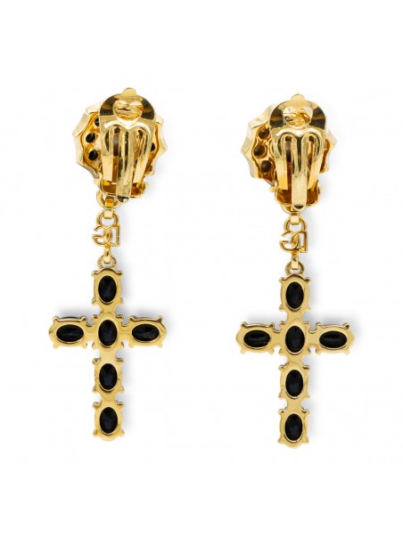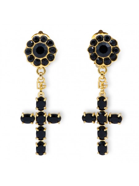 Black and gold earrings from Dolce&Gabbana featuring back fastening, cross and gold tone hardware.