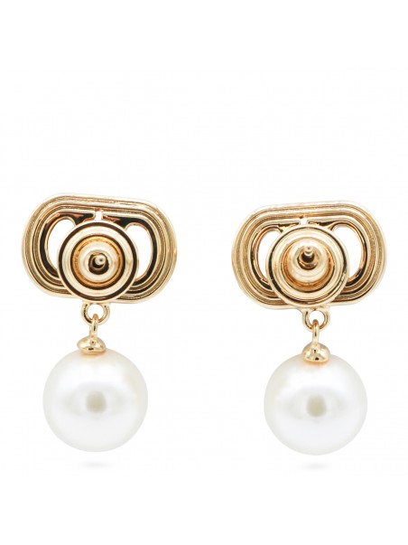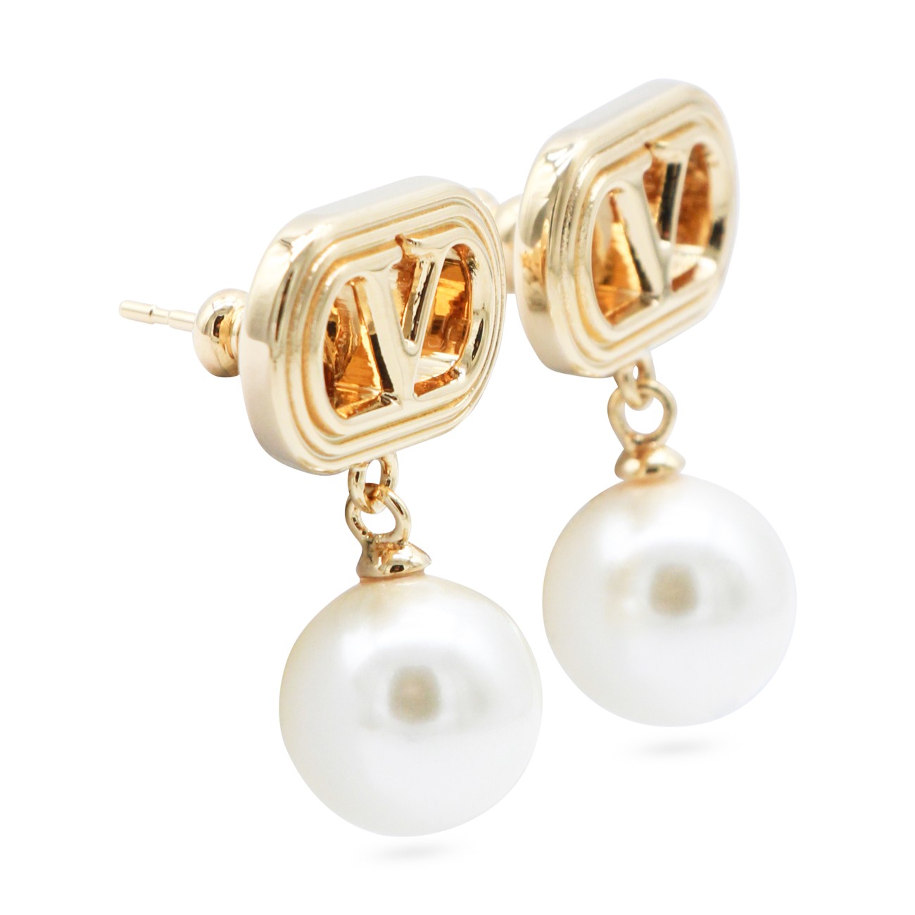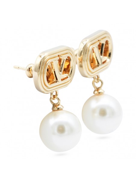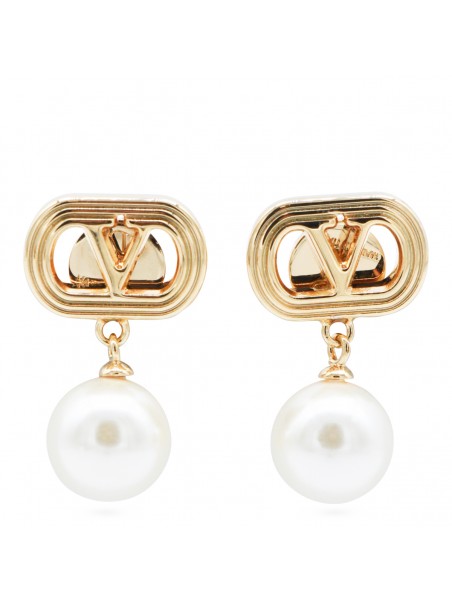Gold metal earrings from Valentino Garavani featuring classic fastening, logo monogram and pearls.