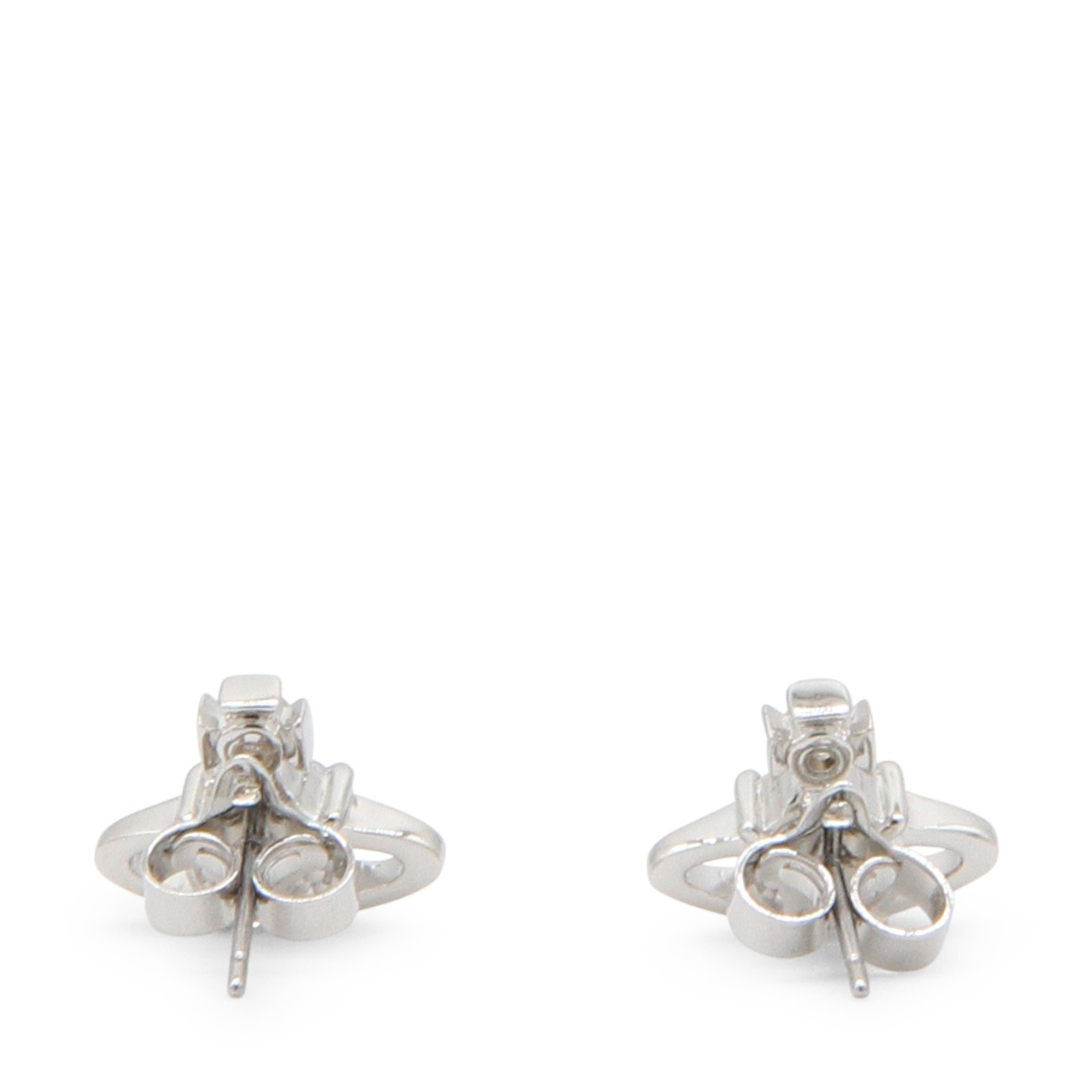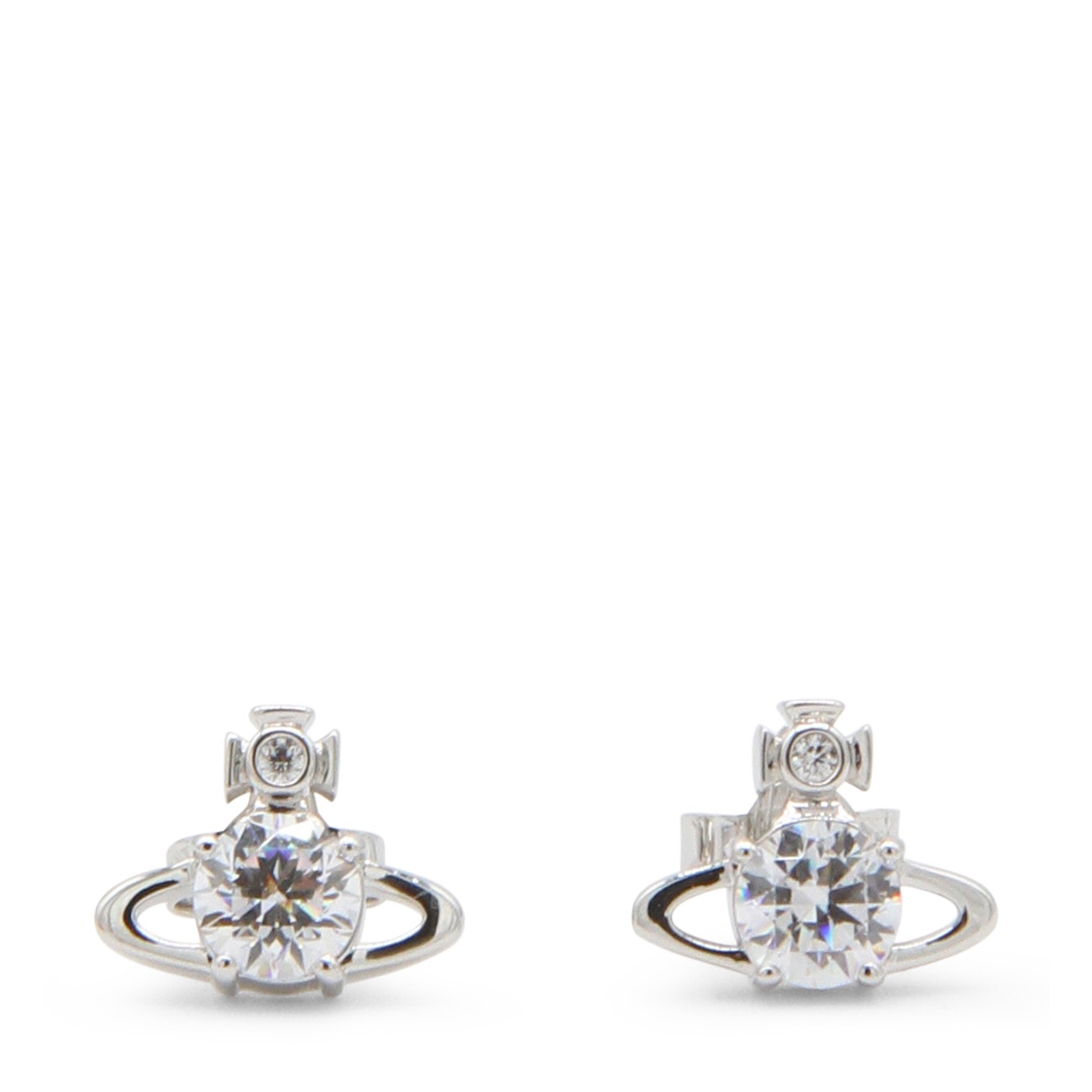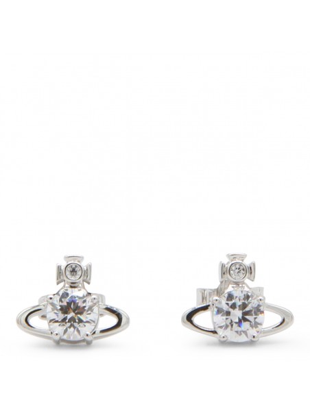 Platinum and white brass Reina earrings from Vivienne Westwood featuring post back closure, Orb detail and crystal embellishments.