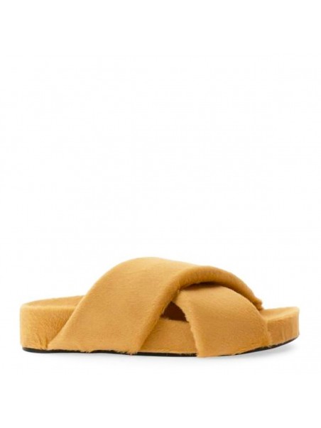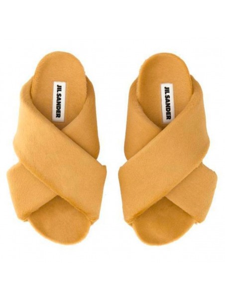 Brown leather flats from Jil Sander featuring round toe, open back and leather sole.