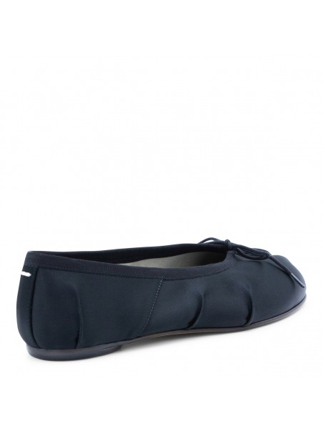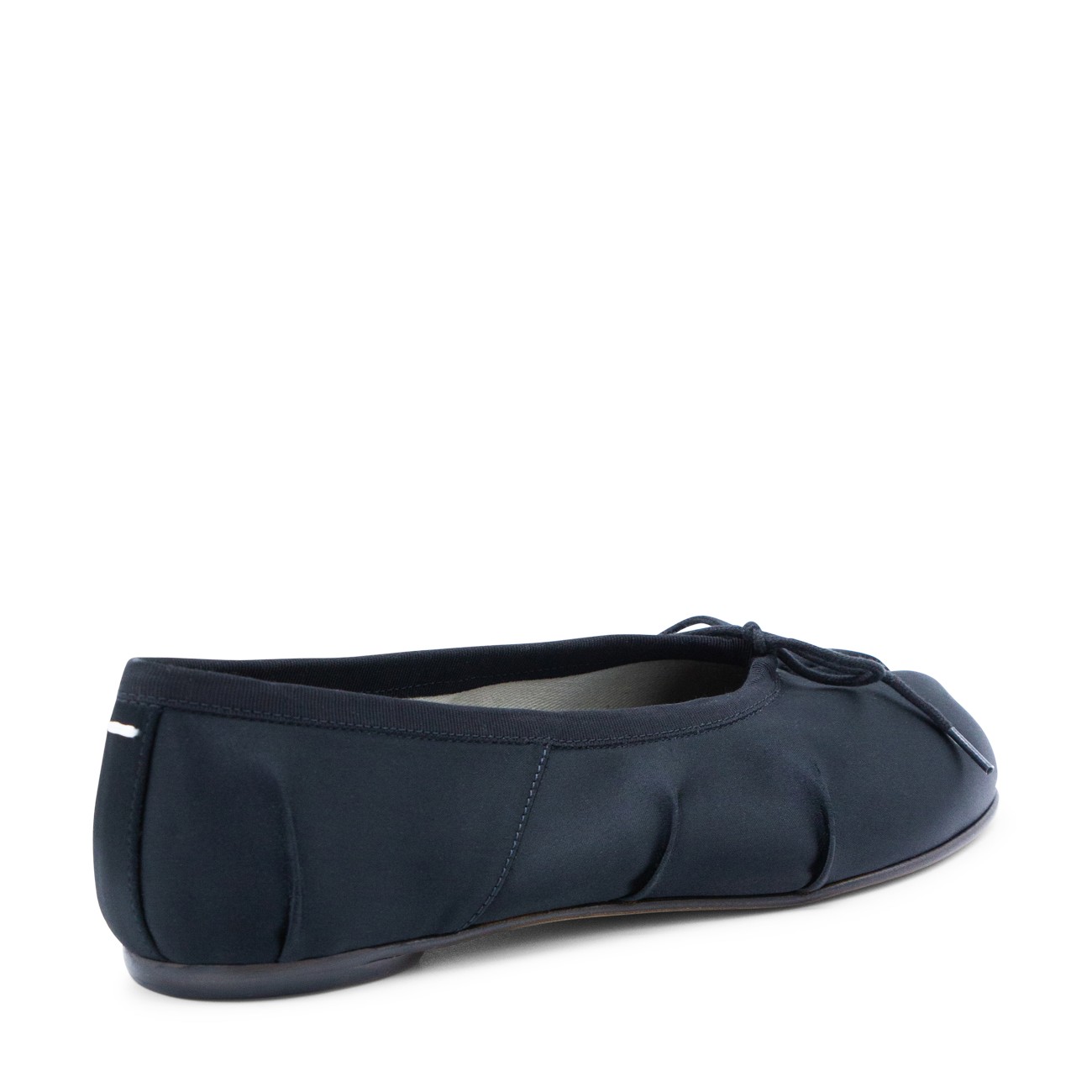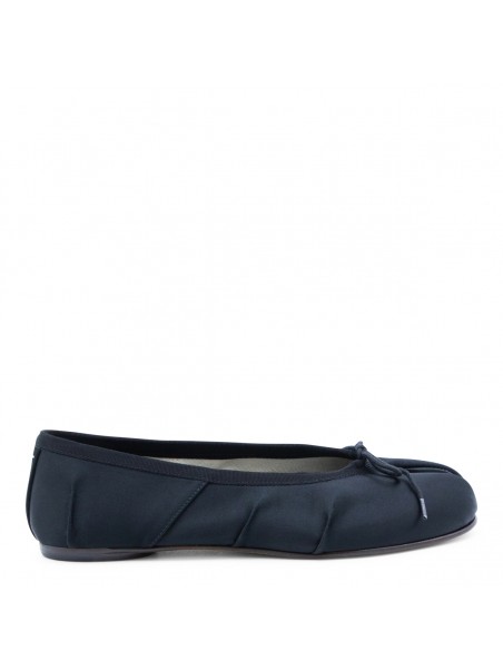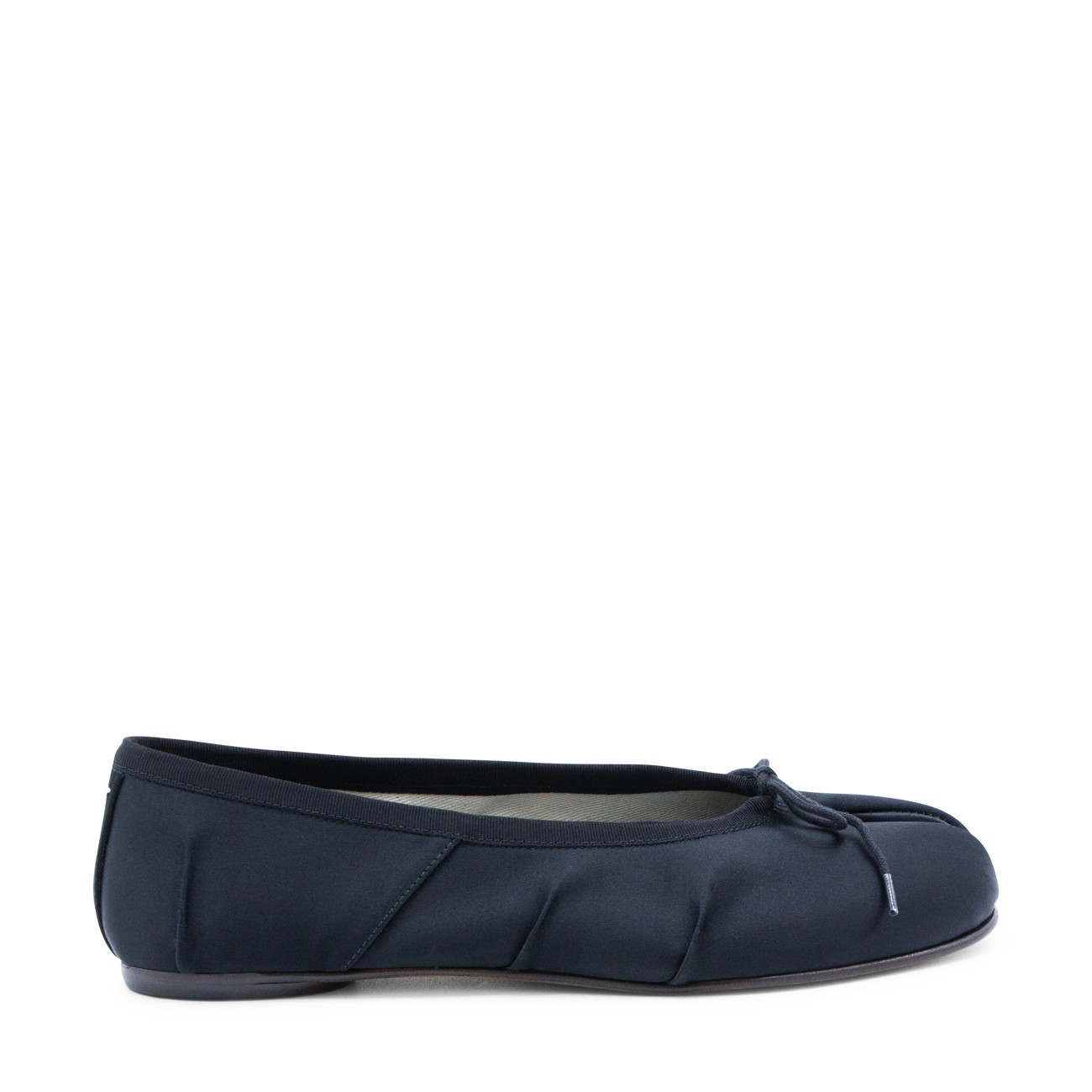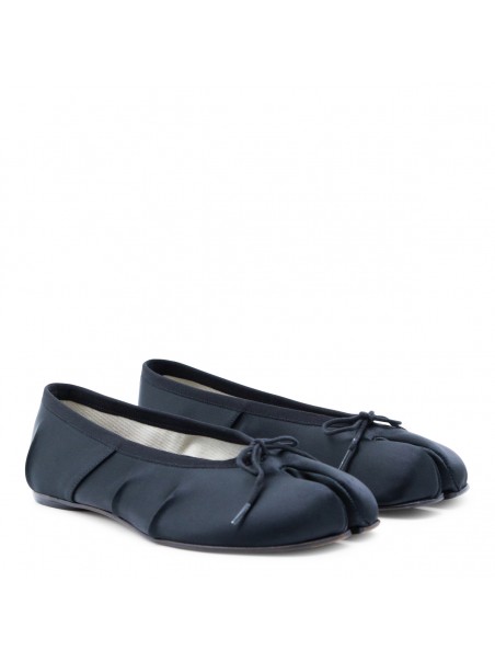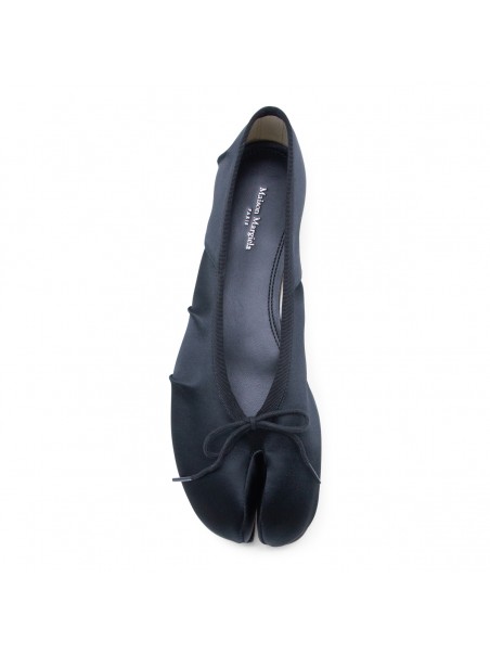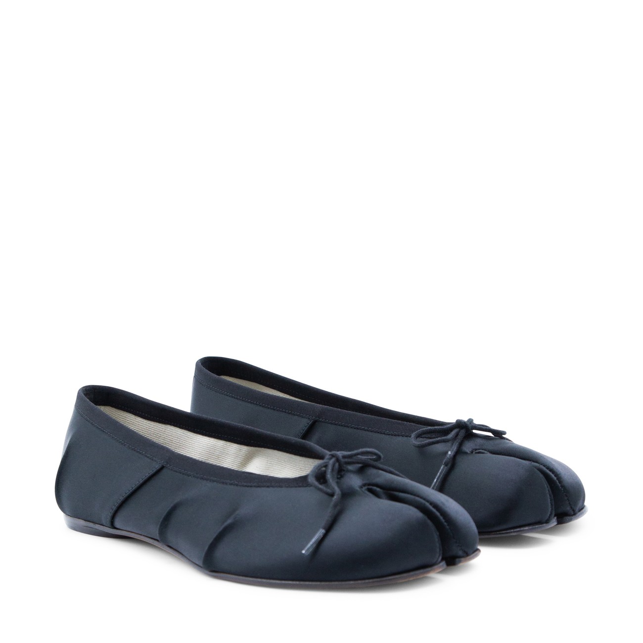 Black leather flats from Maison Margiela featuring Tabi toe, slip-on style and leather sole.