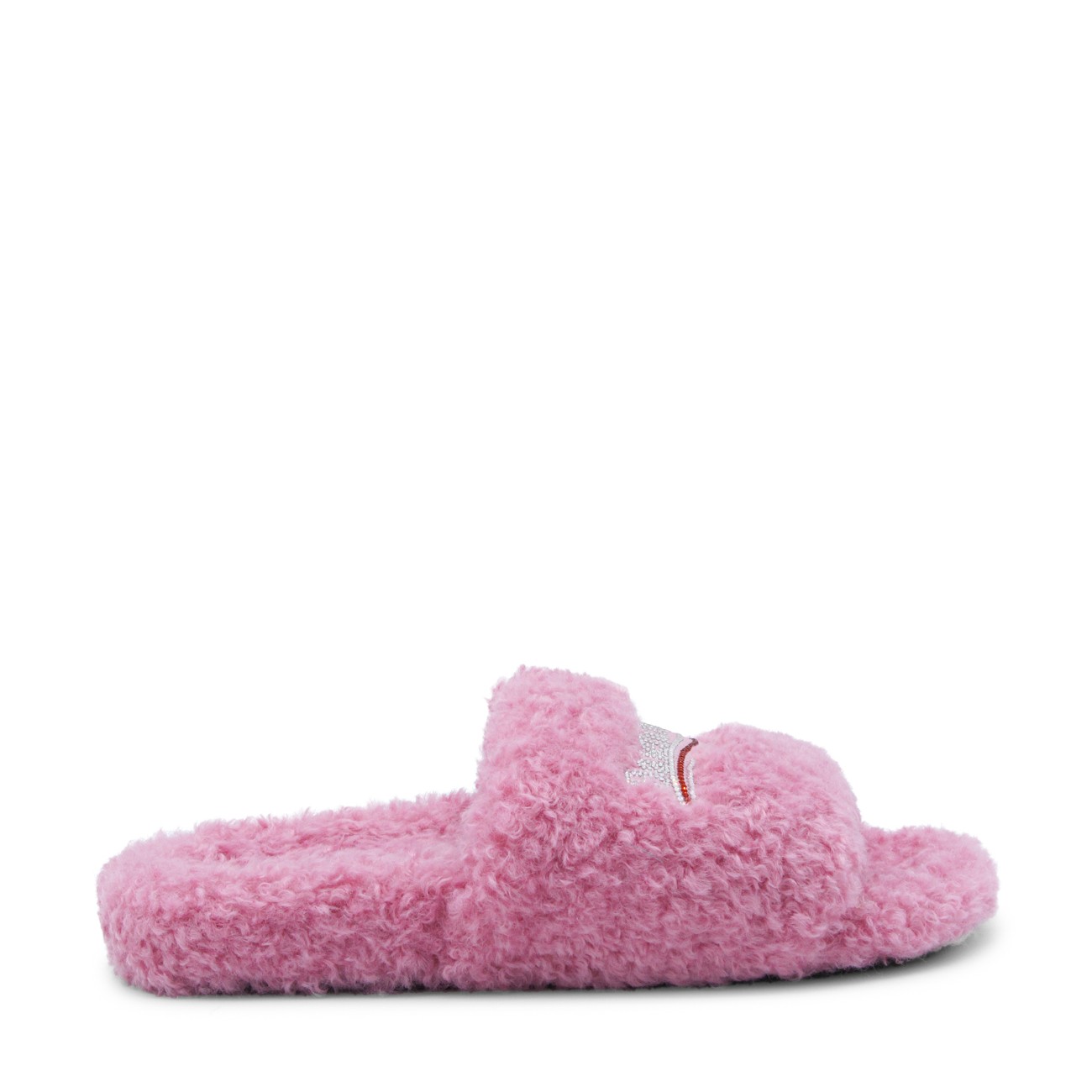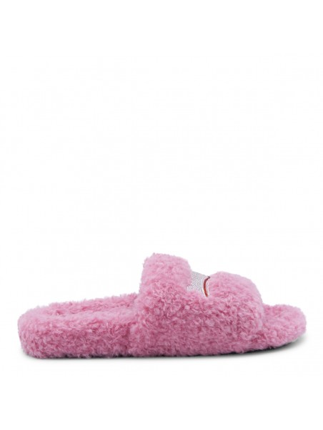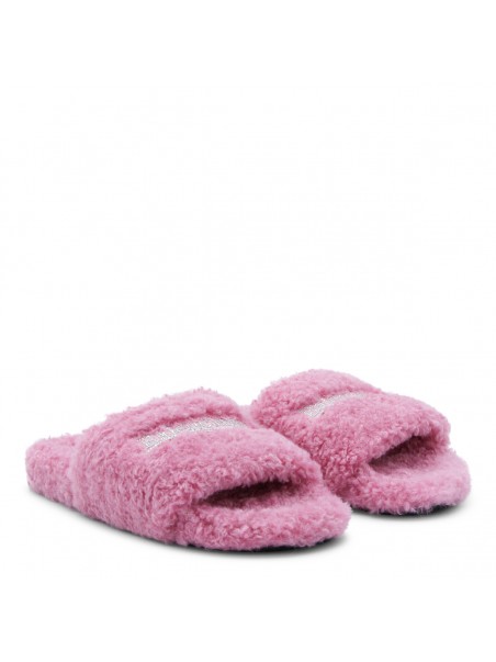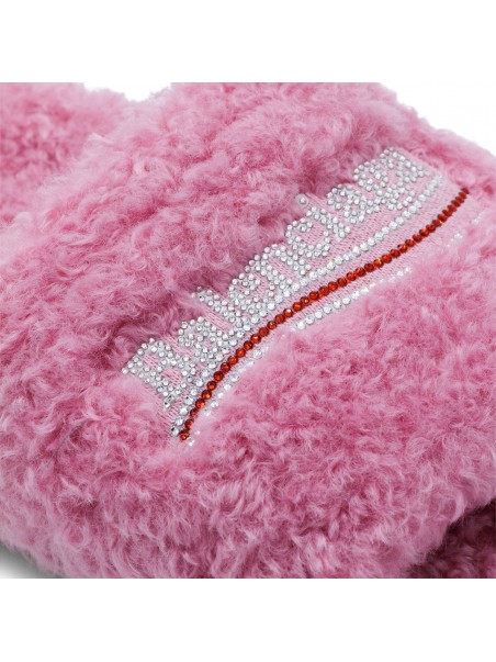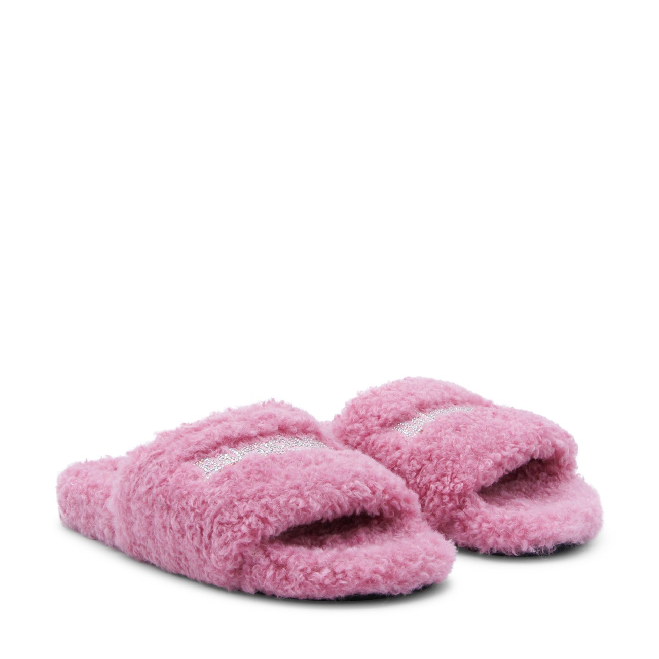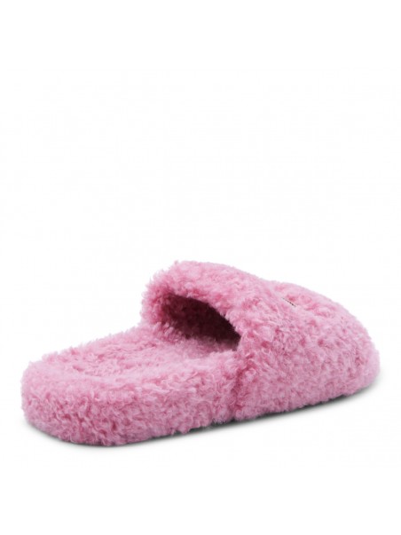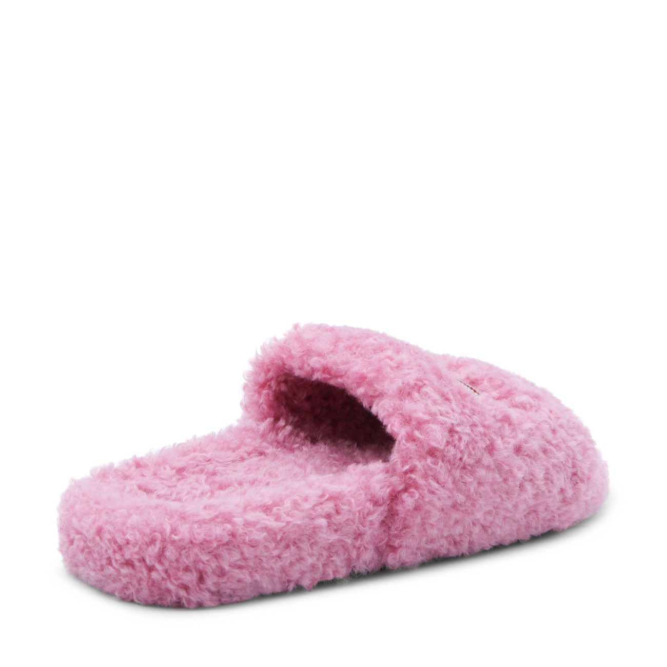 Pink flats from Balenciaga featuring round open toe, leather sole, frontal lettering logo and open back.