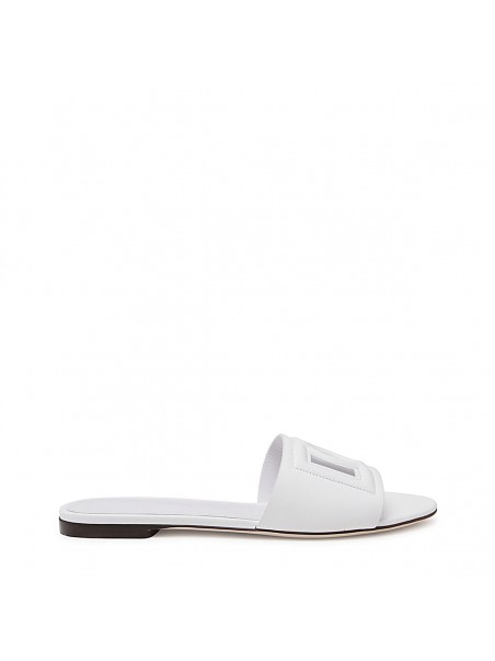 WHITE LEATHER DG MILLENNIALS SLIDES