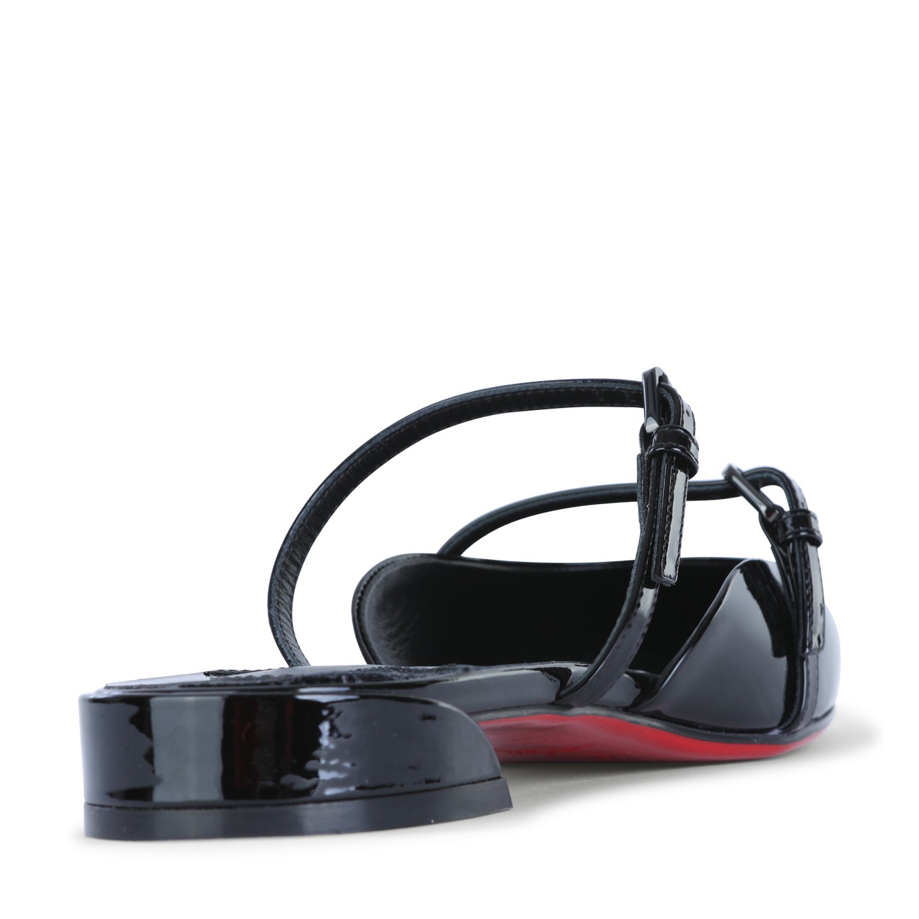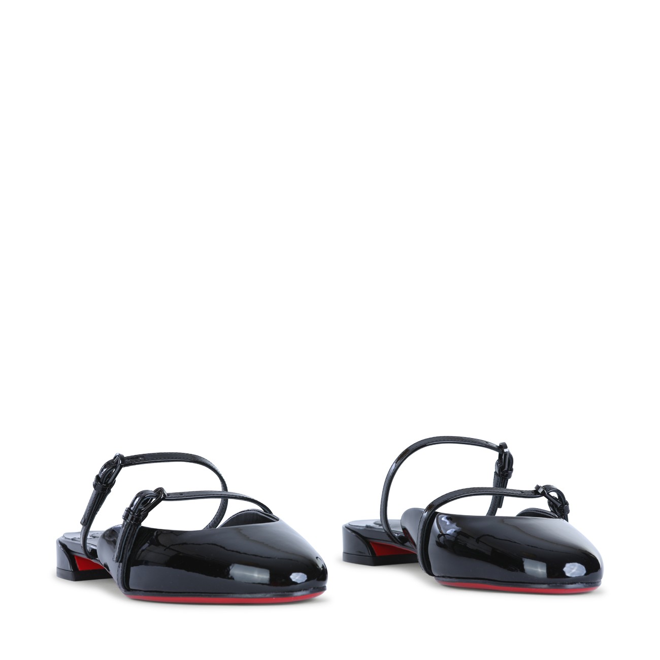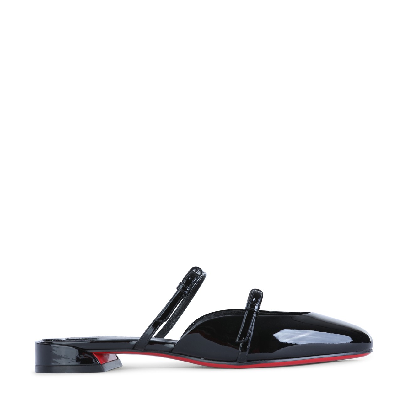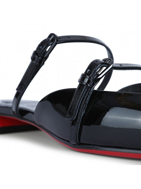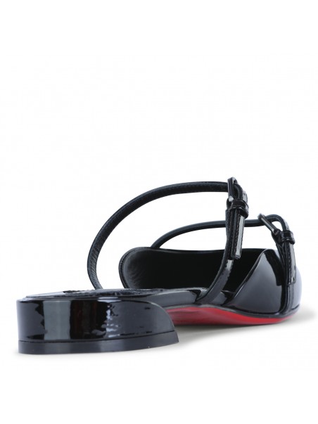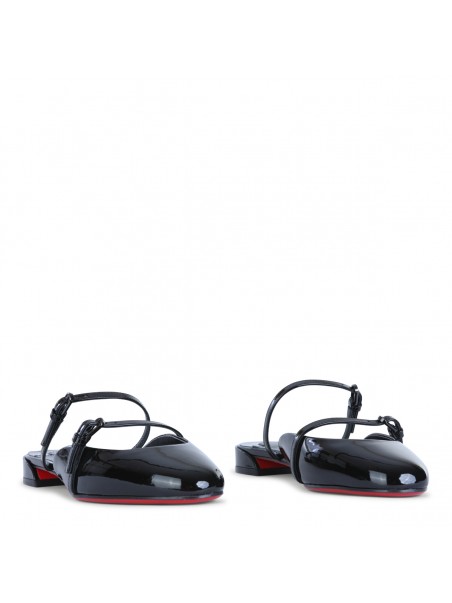 Black leather Jane Nina flats from Christian Louboutin featuring flat line, contrasted sole, branded insole, round toe and double adjustable thin straps.