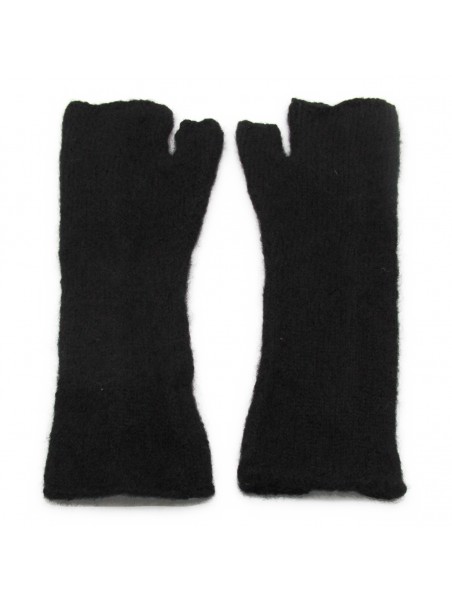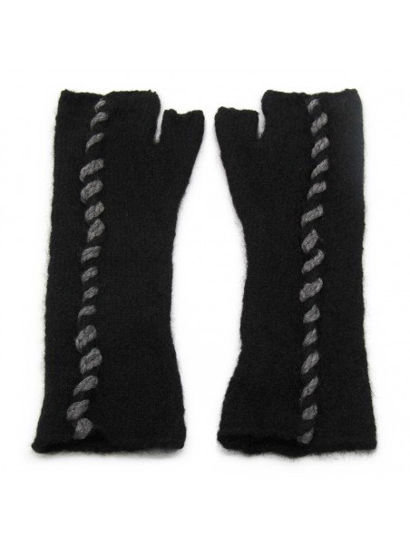 Black wool gloves from Thom Krom featuring contrasting stitchings and knitted construction.