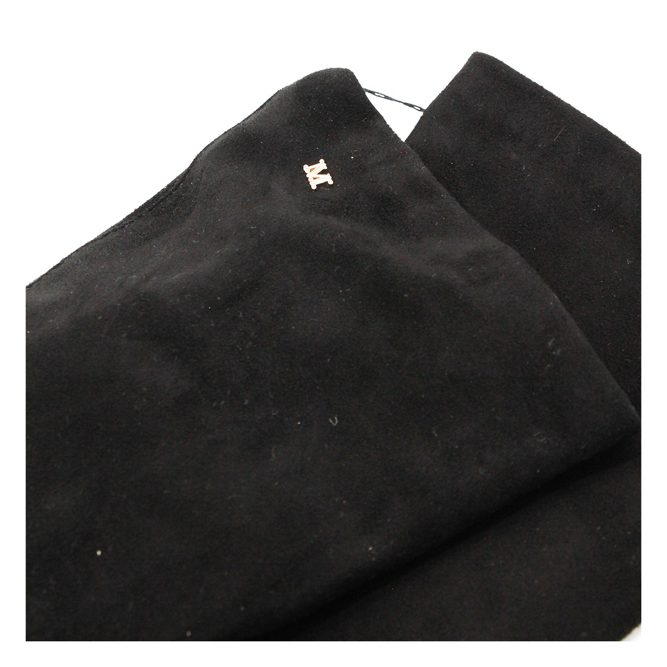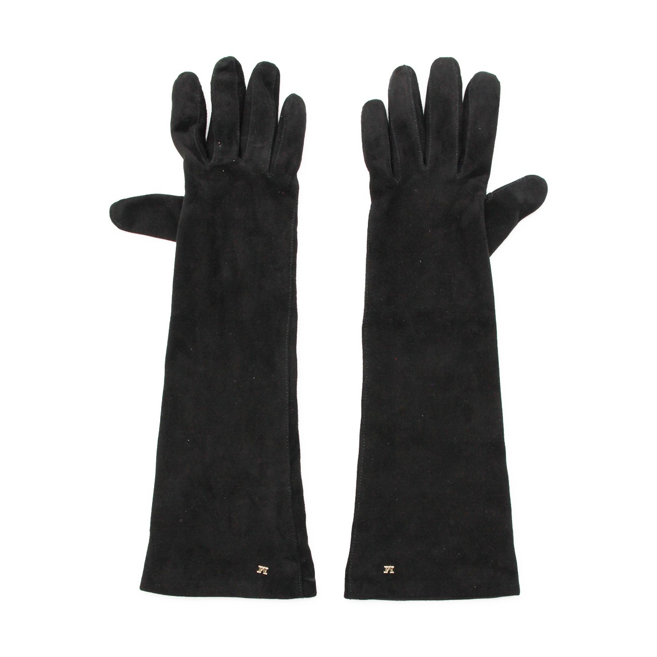 Black leather gloves from Max Mara featuring elbow length and gold tone hardware.