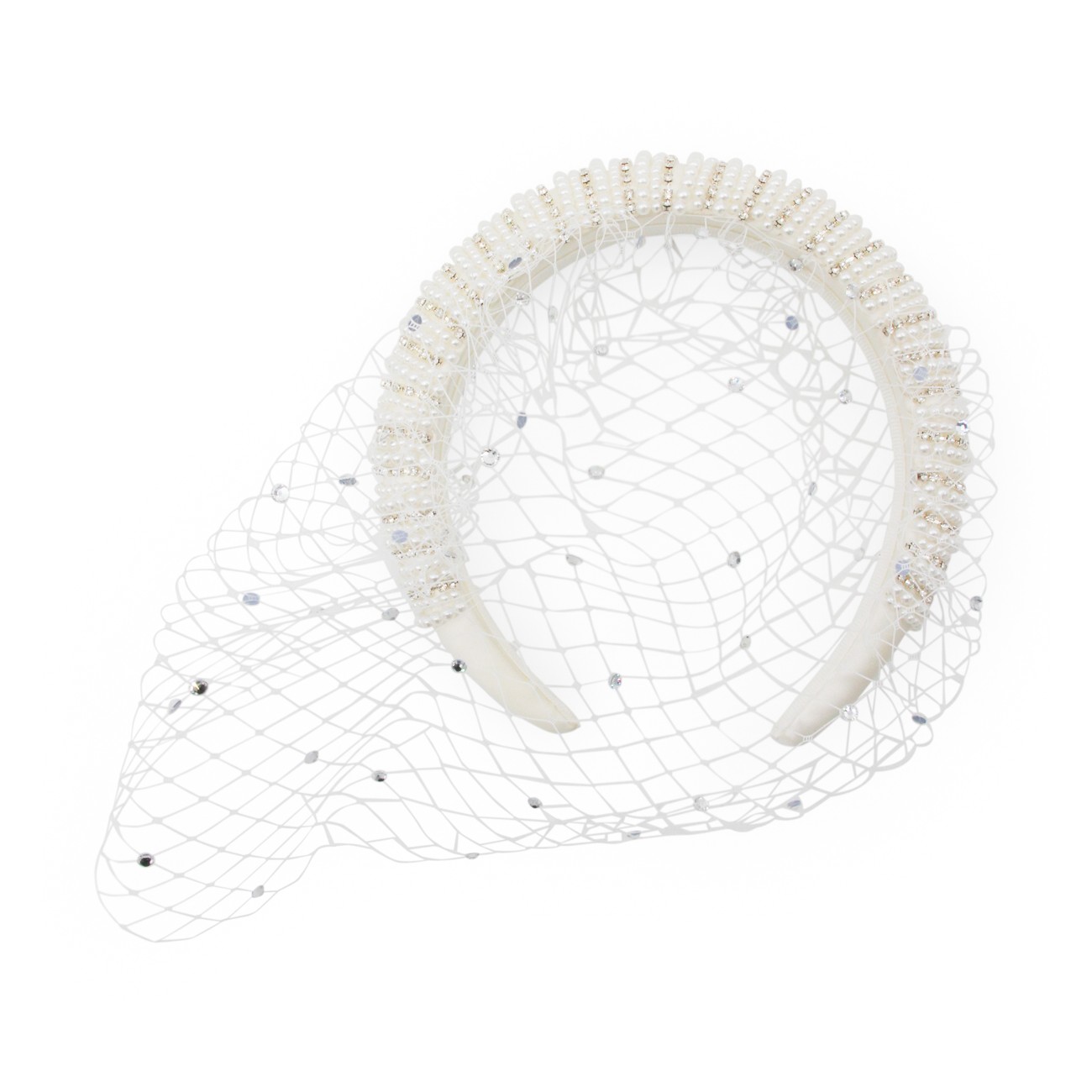 White mesh crystal hairband from Self-Portrait featuring crystal details, medium veil and strass inserts.