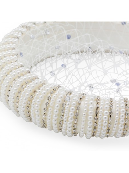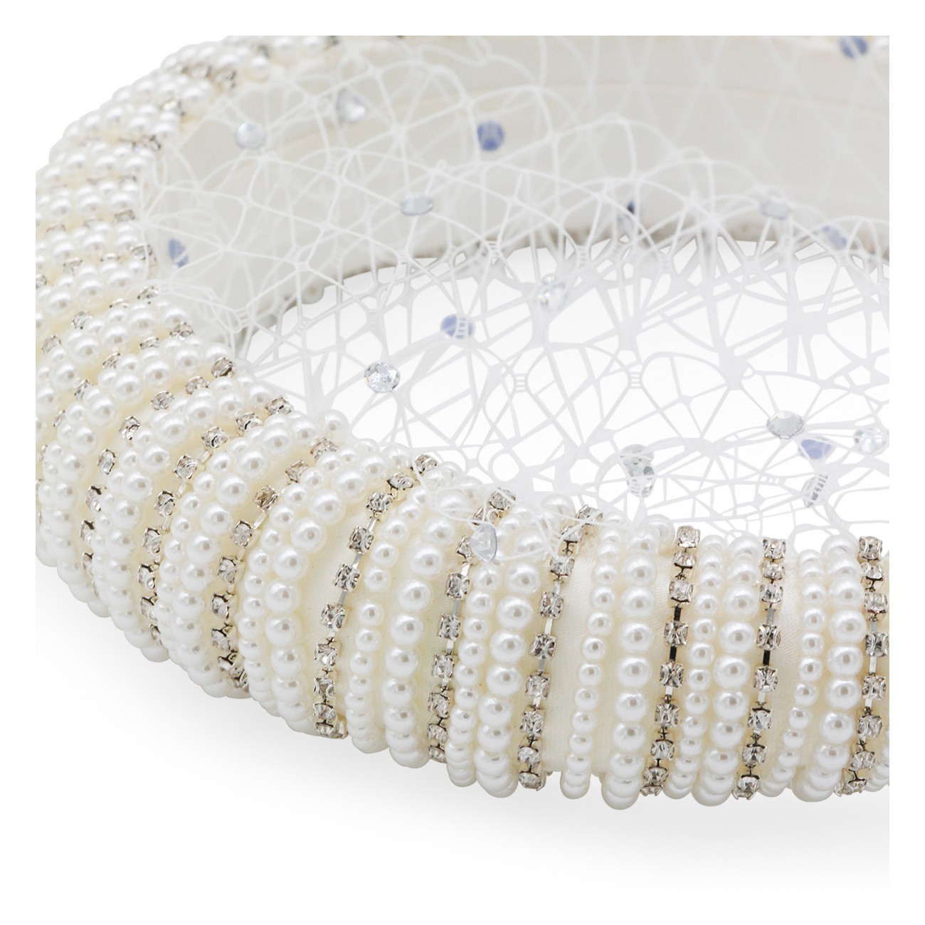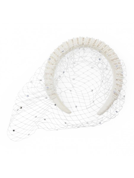 WHITE MESH CRYSTAL HAIRBAND