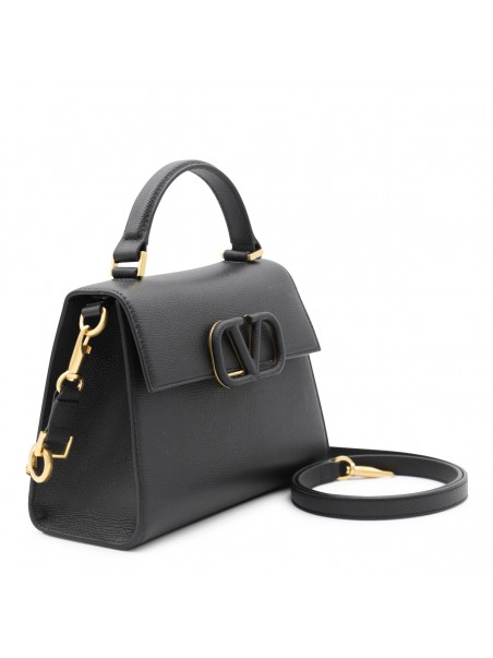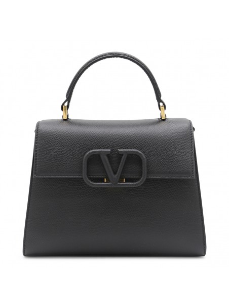 BLACK LEATHER VSLING TOP HANDLE BAG