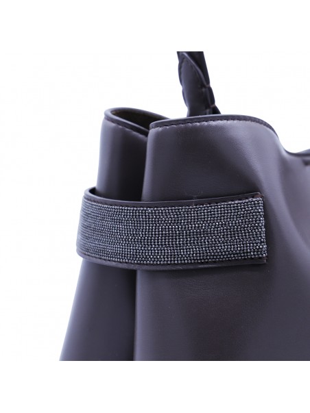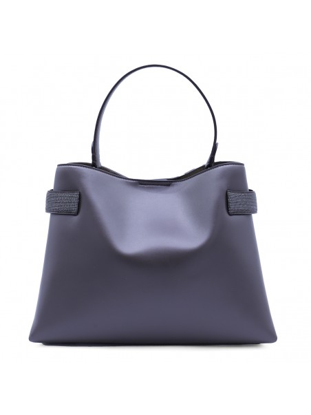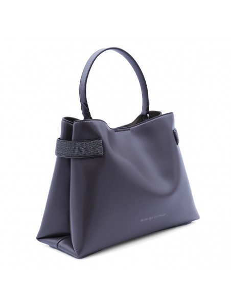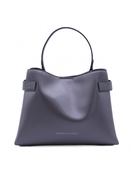 Black leather top handle bag from Brunello Cucinelli featuring top handle, magnetic closure, adjustable and removable shoulder strap, main compartment, details and internal zip pocket.