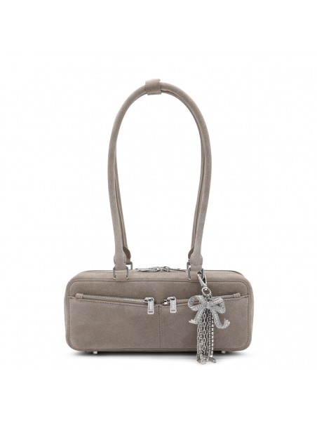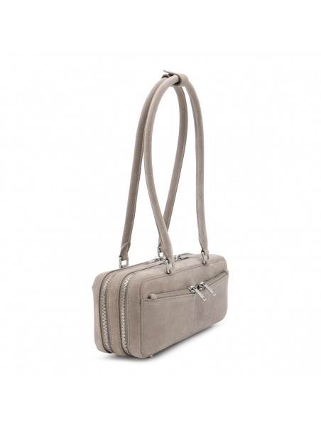 GREY LEATHER TOP HANDLE BAG