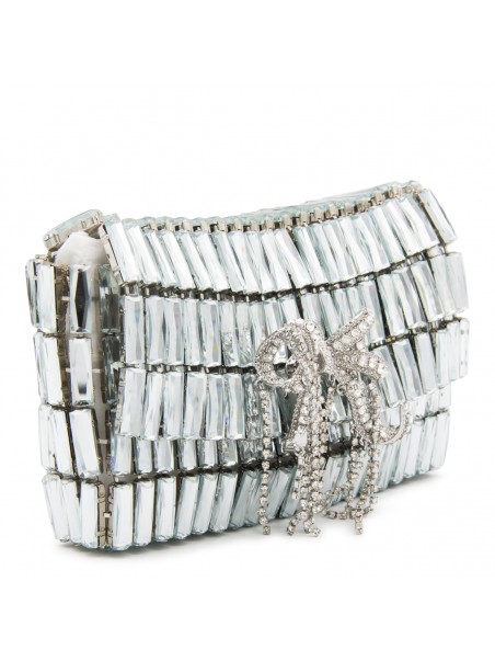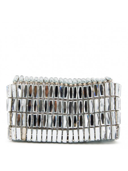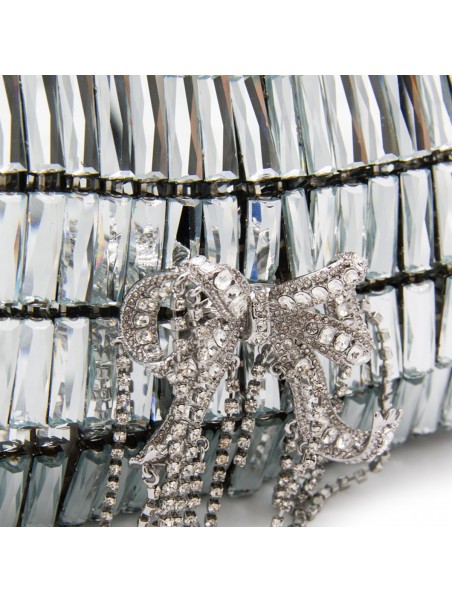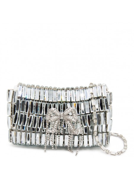Silver glass bag from Self-Portrait featuring frontal fastening, silver tone and chain.