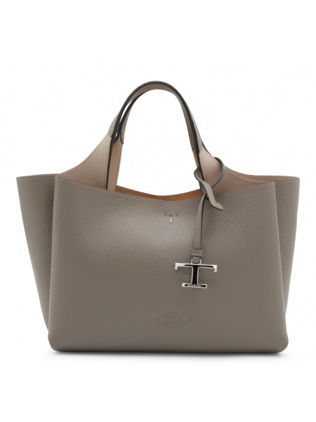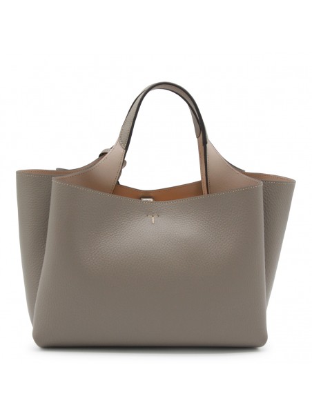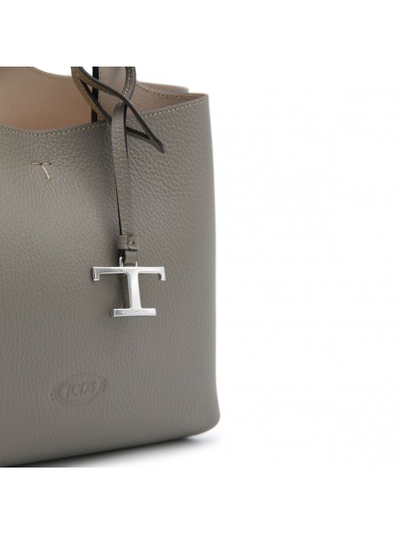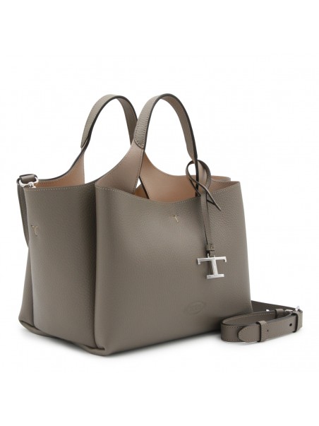 Dark grey leather top handle bag from Tod' featuring top handles, frontal silver tone logo, internal clasp fastening, adjustable shoulder strap and inside pocket.