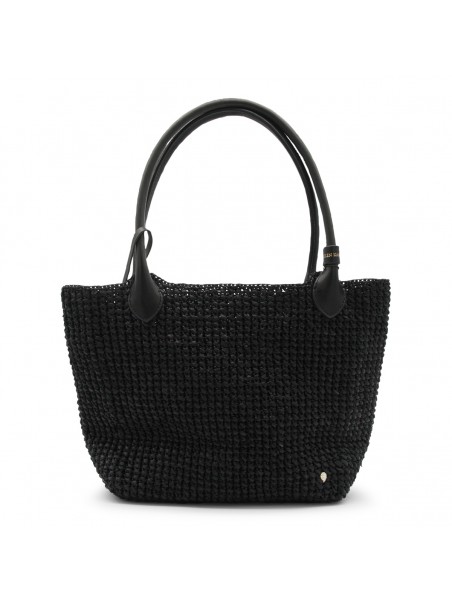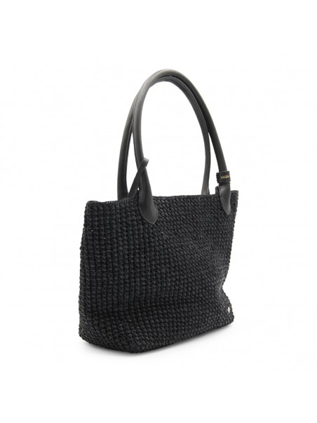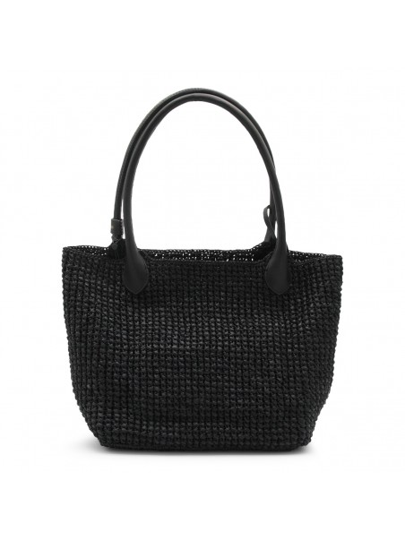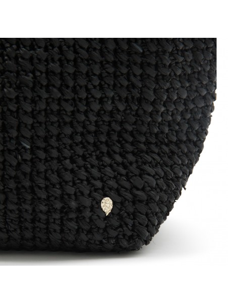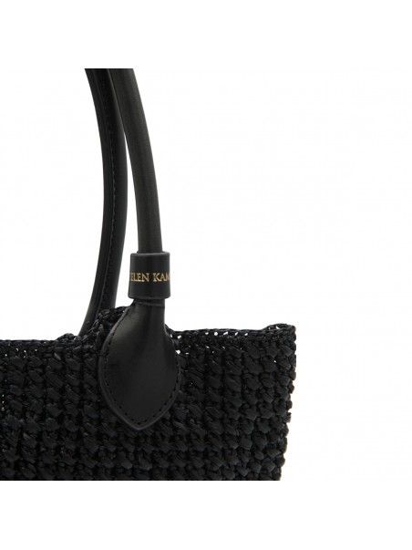 Black raffia top handle bag from Helen Kaminski featuring top handles, upper fastening and inside pocket.