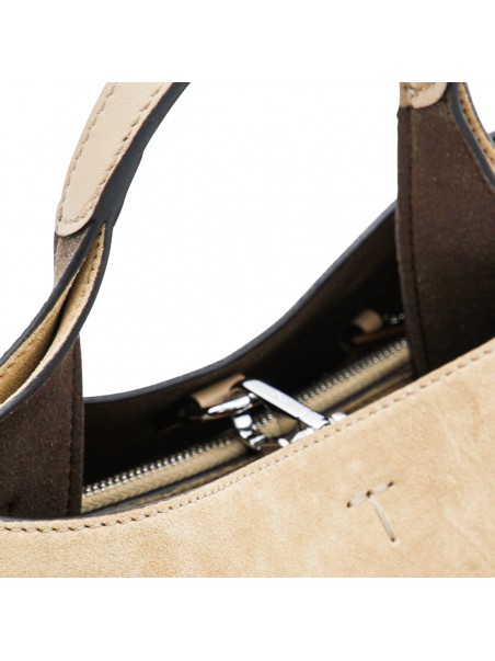 BEIGE SUEDE TOP HANDLE BAG