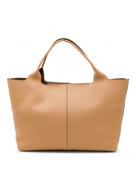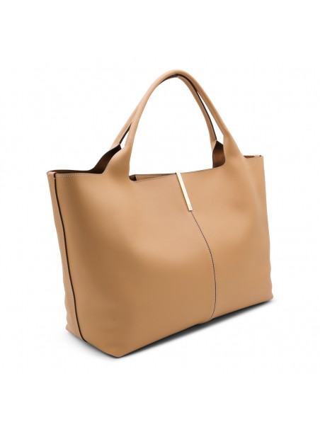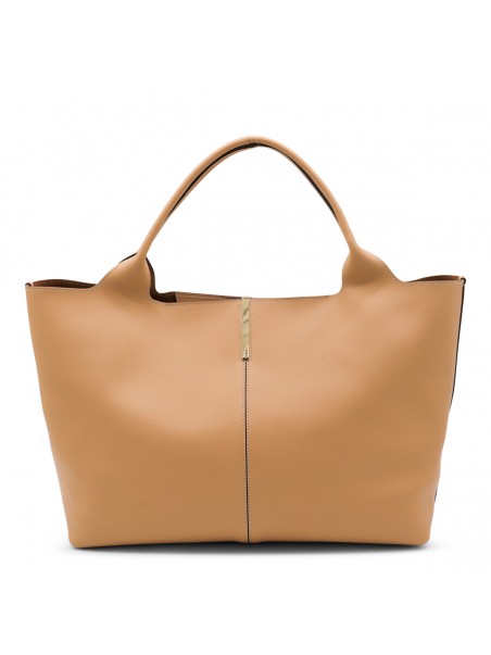 CAMEL LEATHER TOP HANDLE BAG
