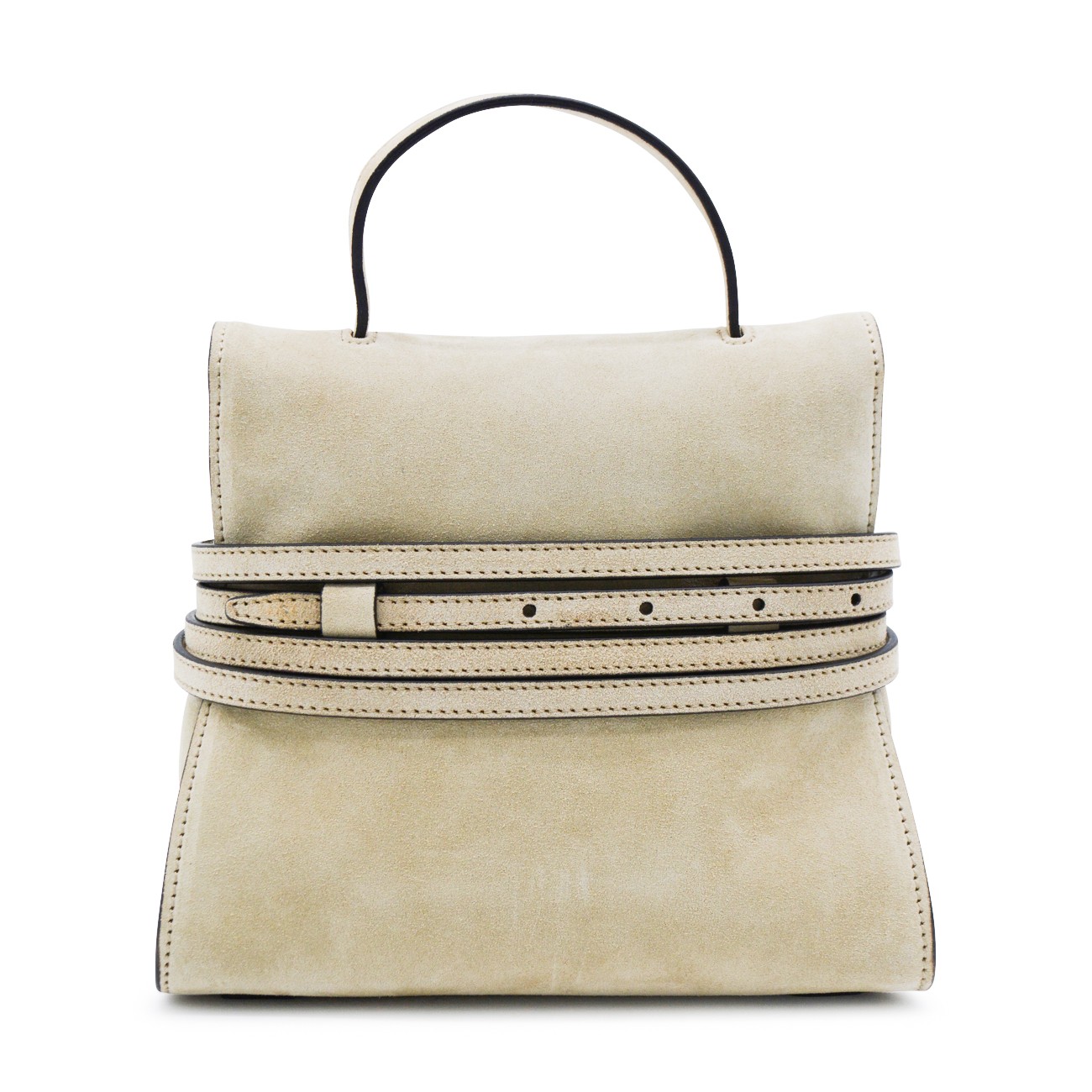 LIGHT BEIGE LEATHER TOP HANDLE BAG