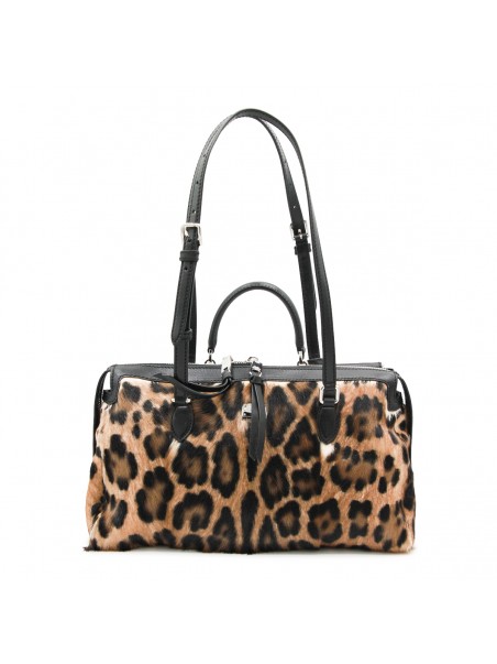 ANIMAL PRINT LEATHER VITTORIA TOP HANDLE BAG