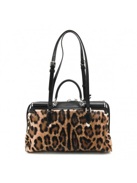 Animal print leather Vittoria top handle bag from Dolce & Gabbana featuring leather handle, frontalo logo plaque, zip fastening, main compartment and internal pockets.